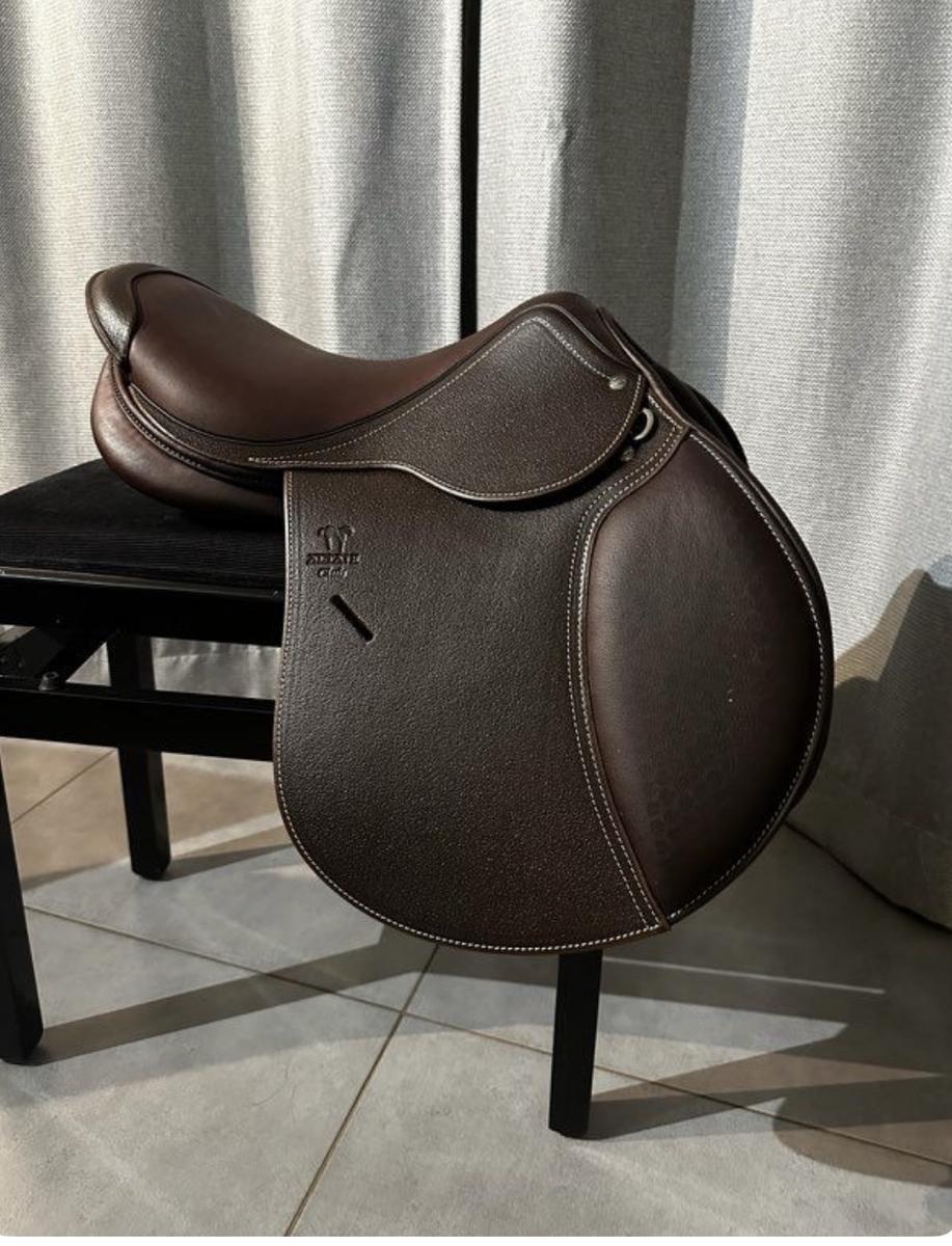 Selle utilisée 3 fois. État proche du neuf. Elle ne convient pas à mon cheval. Vendue sans étrivières ni étriers, seulement avec sa housse et son protège troussequin.