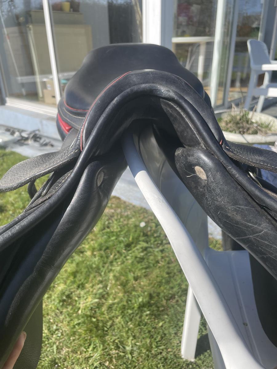 Prix de la selle vendue nue ; possible d’ajouter les étrivières Pénélope Leprévost (noir surpiqûre blanche) ; une sangle et un filet de la même couleur que la selle. Étriers vendus