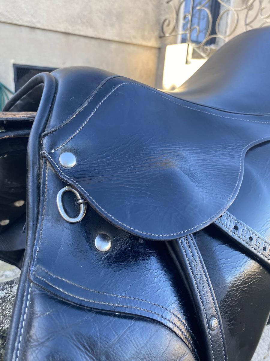 Selle mixte Taille de siège 17p Cuir noir Toujours très bien entretenue, usure classique Vendue nue avec sa housse