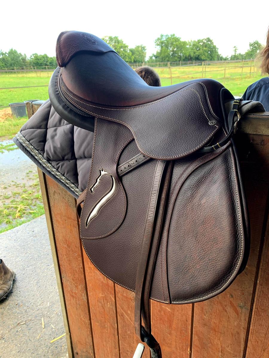 🐴 Selle Antarès Connexion 17,5” à vendre – État neuf ! 🐴 Prix : 2250€ (valeur neuve 4 440 €) Je vends ma selle Antarès modèle Connexion achetée neuve en janvier 2020, très peu utilisée et en excellent état. 🔹 Détails techniques : • Modèle : Antarès Connexion • Taille siège : 17,5 pouces • Quartiers : 1A (avance standard) • Taille des quartiers : 2 • Arcade : AF2 • Finition : Grainé (GV) • Couleur : Marron foncé • Mousse : M15 • DTA : 20 • Sanglage : V • Couteaux d’étrivières :...