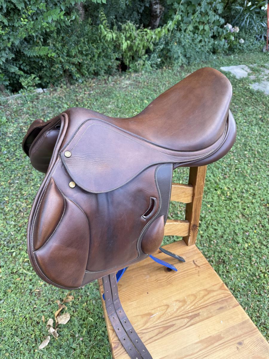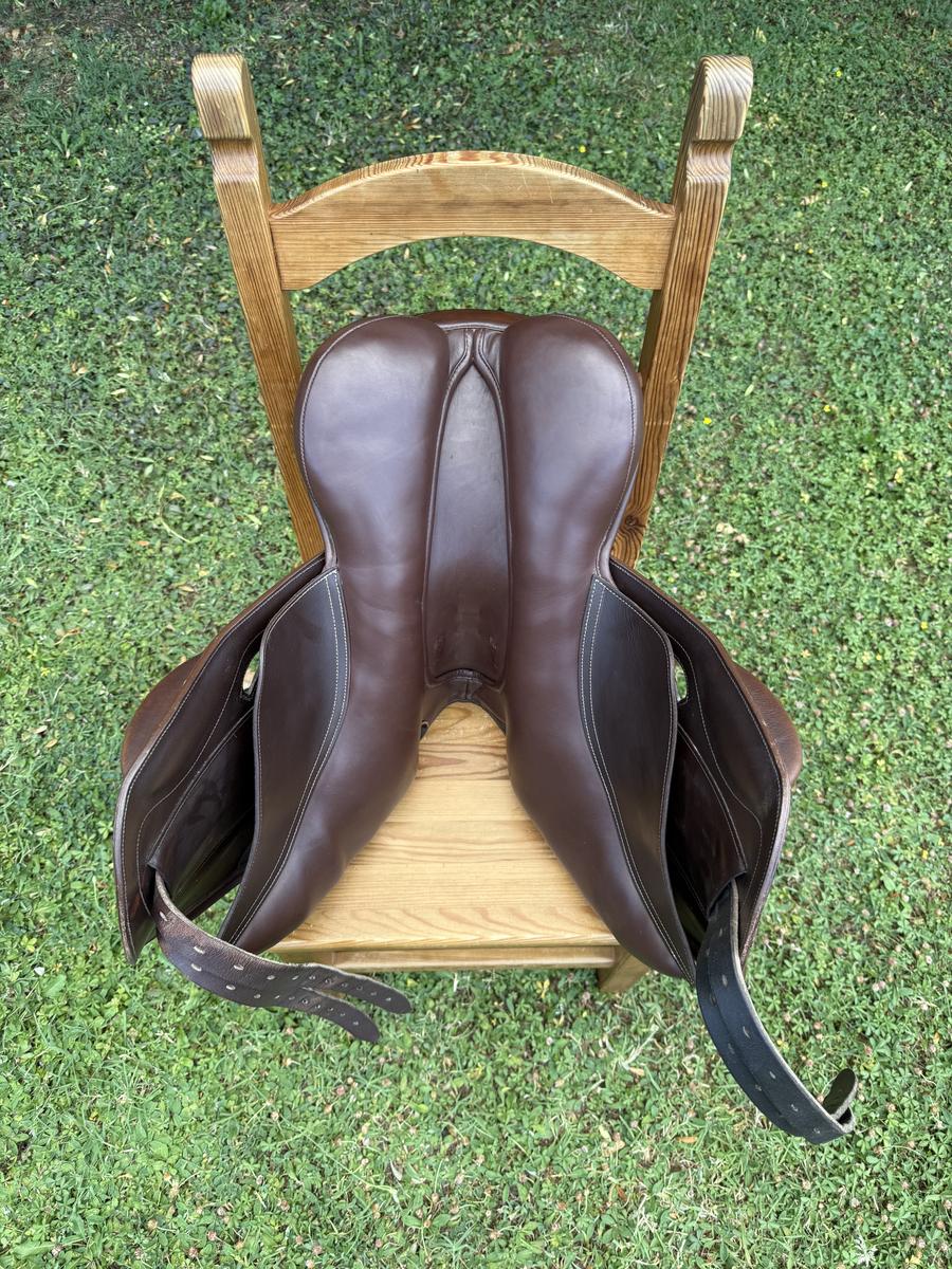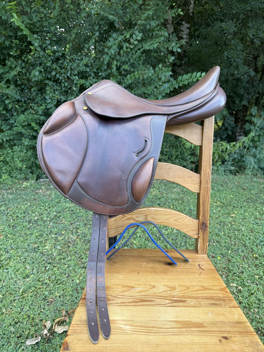 Selle mixte Monoquartier Éric Thomas couleur Havane arcade interchangeable taille 17", vendu avec 3 arcades (vert, bleu et noir). Très bon état et très bien entretenue.