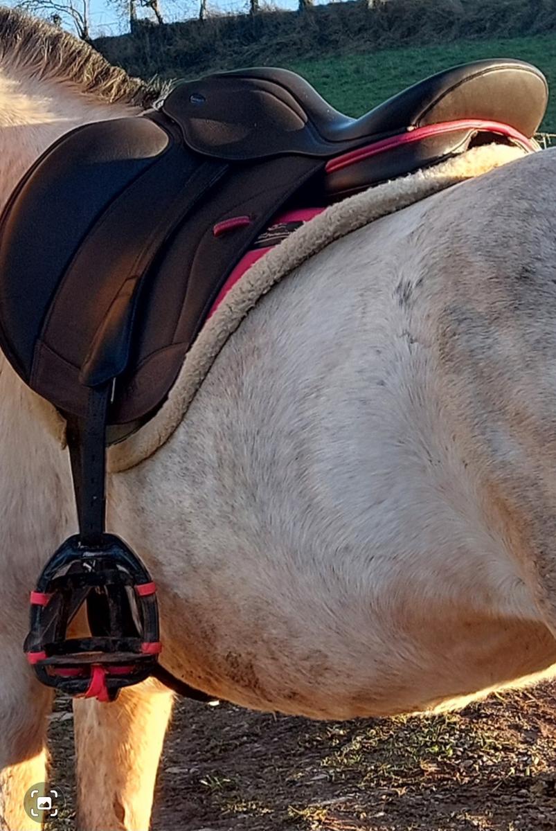 Modèle dressage avec personnalisation de quartier un peu plus court pour une selle plus polyvalente.