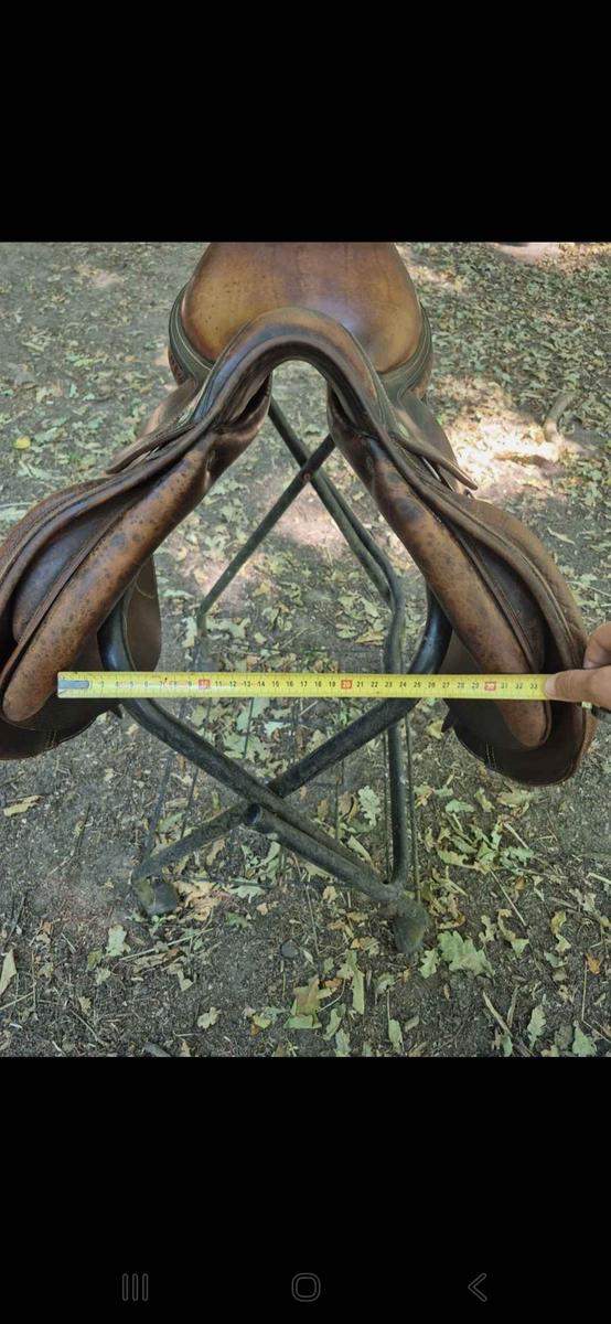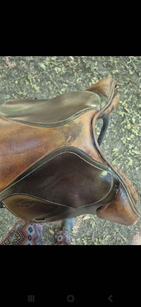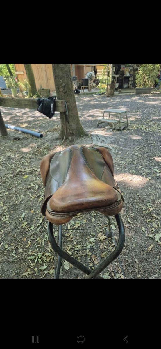 Vends selle Devoucoux mixte 17,5 pouces. Bon état général, vendue avec housse showmaster. Marque : Devoucoux Année : 2003 Modele : Biarritz Ouverture d’arcade : 11,5 cm Taille des quartiers : 3 Matière : cuir Plus de photos sur demande