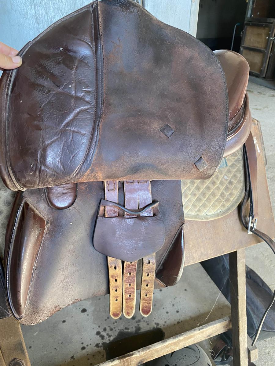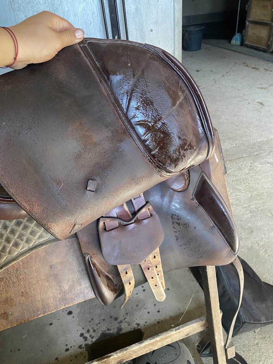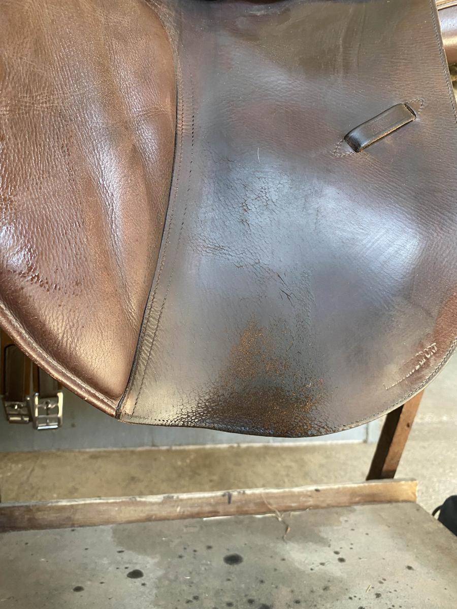 bon cuir de bœuf, selle un peu vieille donc quelques marques d’usure mais tout à fais opérationnel,
