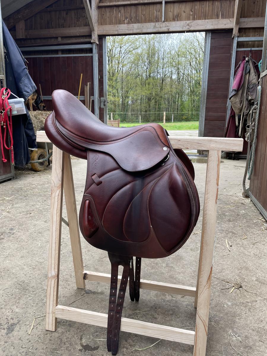 Selle antares monoquartier, 17 pouces, en très bon état. Selle disponible en dépot à la sellerie du clos rimbaud près de Nancy, et visible sur leur site internet, n'hésitez pas à me demander le lien !