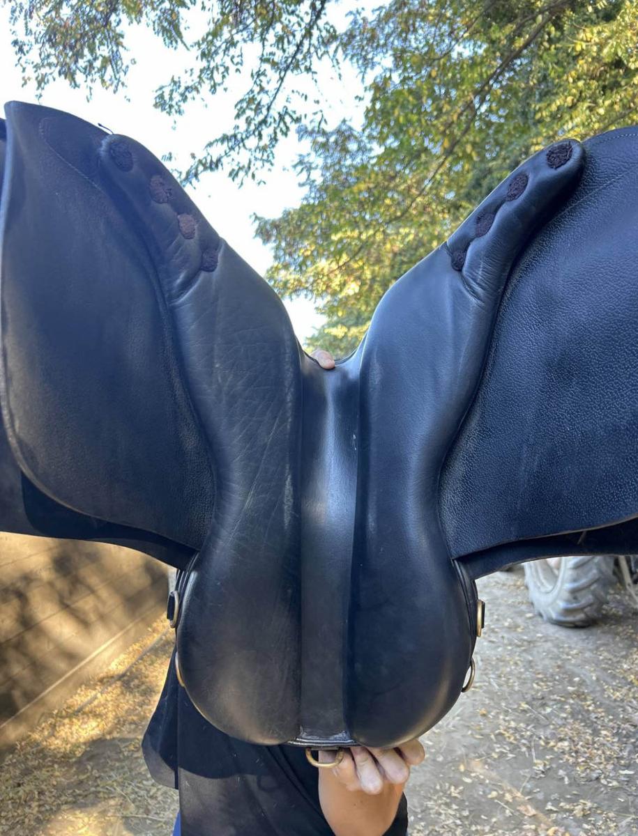 Selle mixte 17,5 Hyper confortable La selle peut servir à un cheval avec un gros garrot VENDU avec une sangle fouganza 135 cm Possibilité d’être vendu en plus avec des étrivière norton monobranche pour 45€ Pour plus de renseignements venir MP