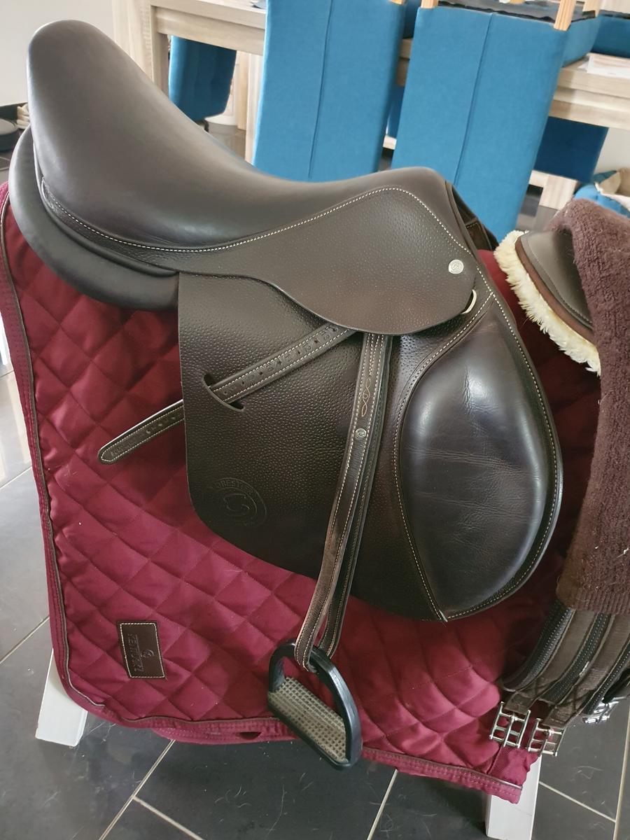 Selle forestier prems de 2022. Toujours très bien entretenue. Vendue équipée, étrier, etrivieres, sangles. Taille 17 pouce. Très confortable pour toute activité, obstacle, cross, dressage, balade.