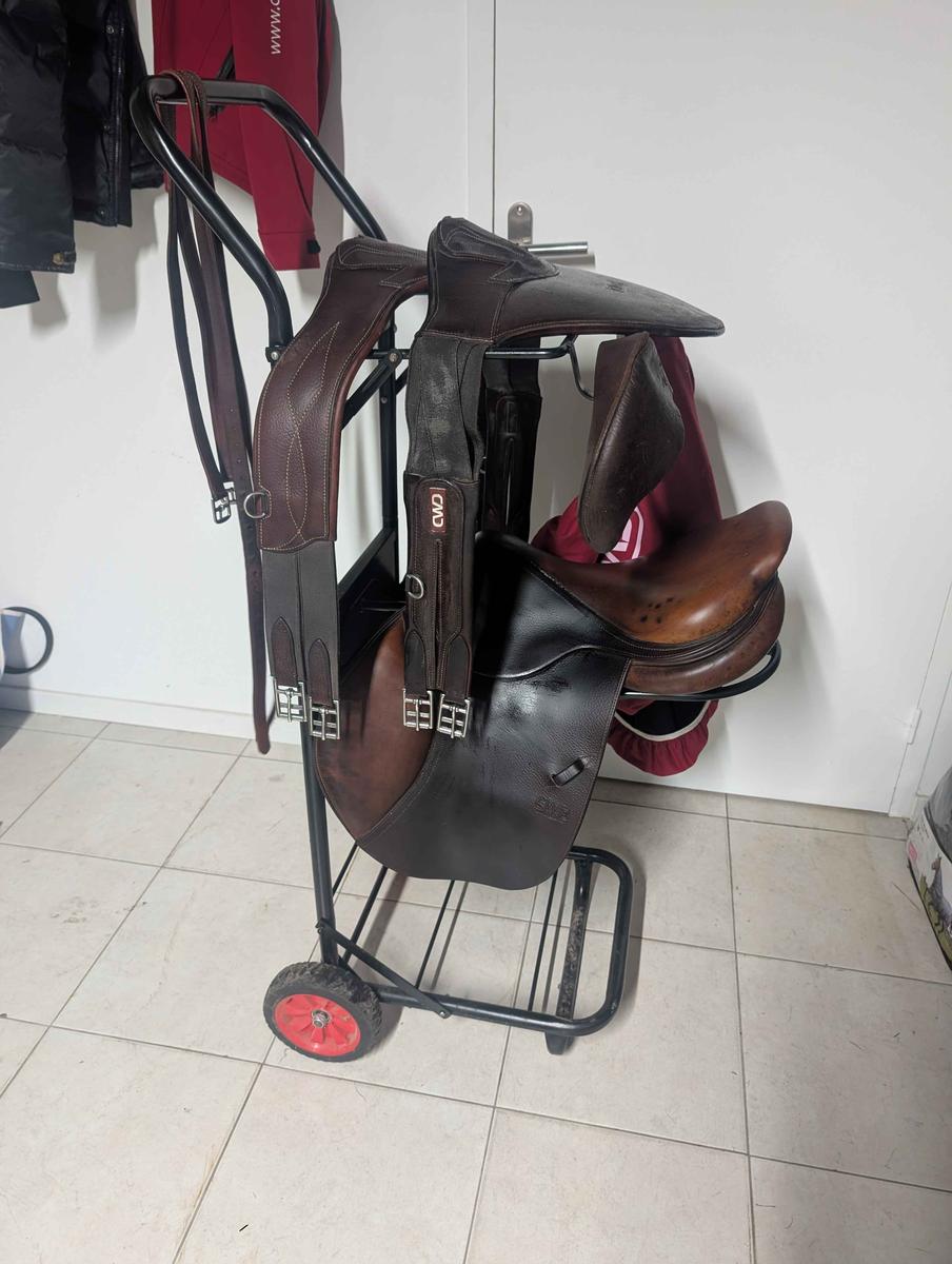 Selle CWD SE02 17″ TR 2C Je mets en vente une selle de saut de marque CWD, modèle SE02, taille 17 pouces, quartiers 2C, cuir grainé (TR) ✅ Arçon contrôlé et en parfait état ✅ Utilisation loisir : 3 à 4 fois/semaine maximum (avec période d’arrêt) ✅ Entretien régulier : nettoyée, graissée, stockée à l’abri ✅ État général très bon, prêt à monter 🔸 Inclus dans la vente : - la selle avec ses étrivières d’origine (sans les étriers) - protège-selle CWD + protège troussequin --> j'offre le kit...