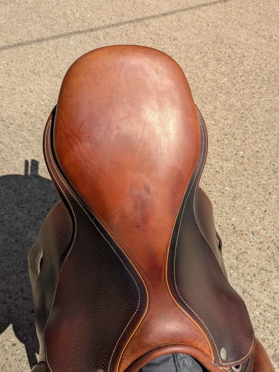 selle Childéric mixte en cuir marron avec une orientation cross, très fine, les mêmes sensations que sur une mono quartier mais avec les avantages de la double quartier elle est de 2013 en très bon état, taille des quartiers 2 1/4