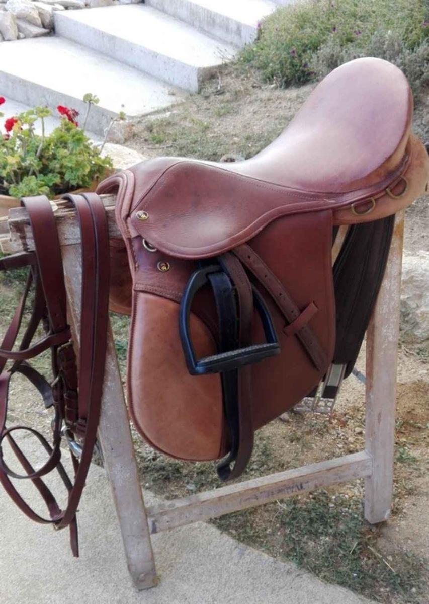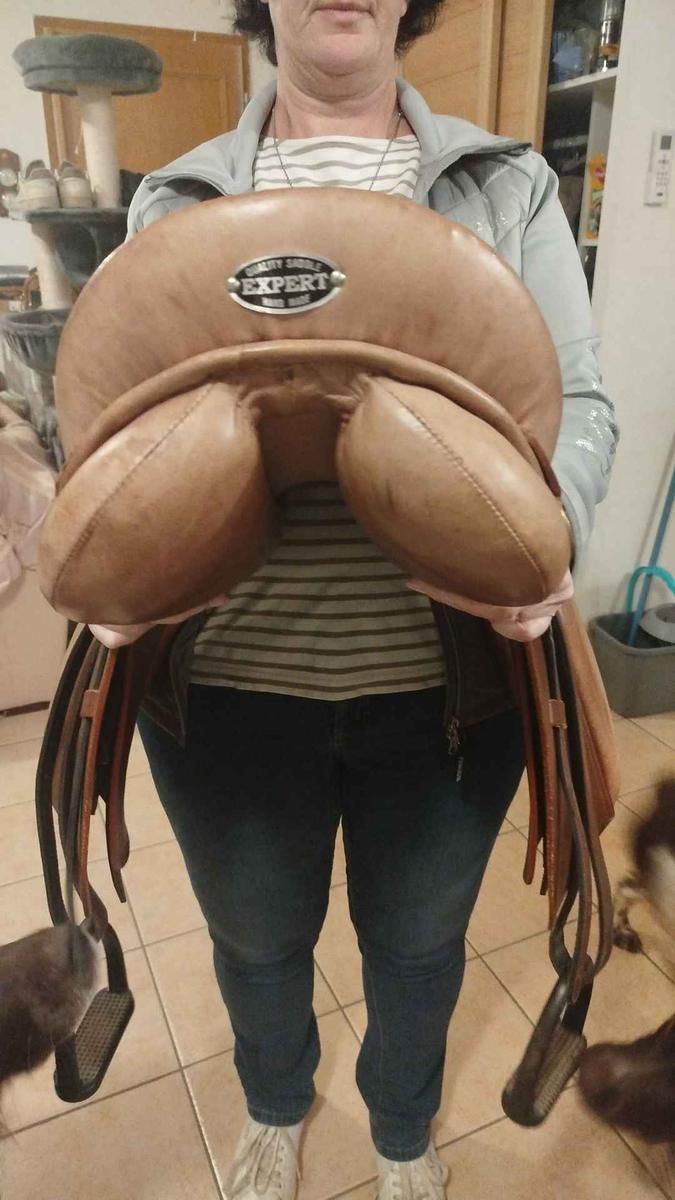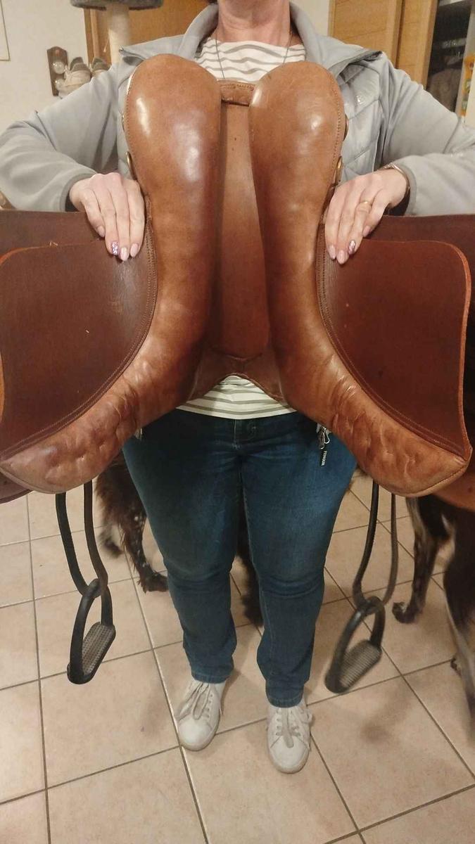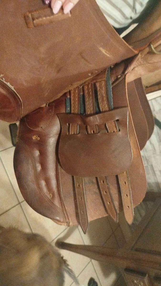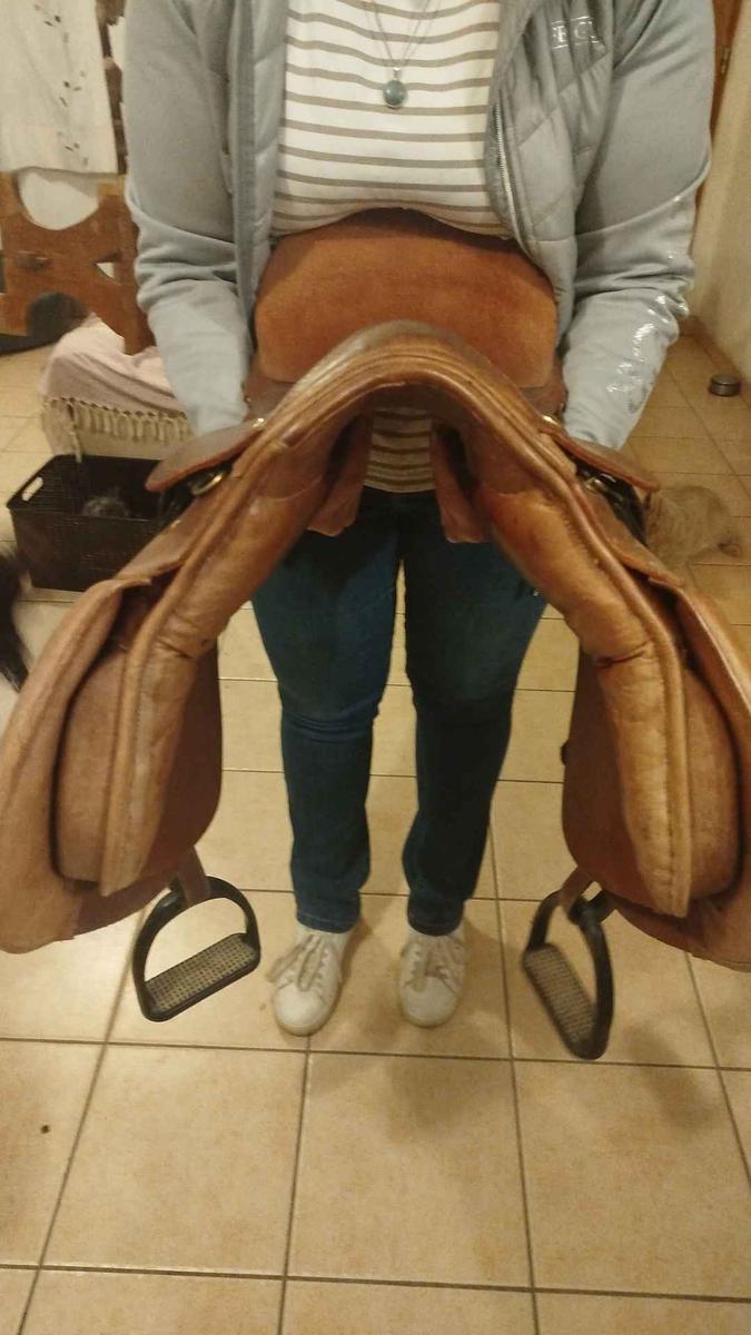 selle mixte de 17 '' viens de la sellerie Baude je la vends car elle ne convient pas à ma jument elle sera vendu avec étrier, étrivières et sangle ainsi que le protège sangle