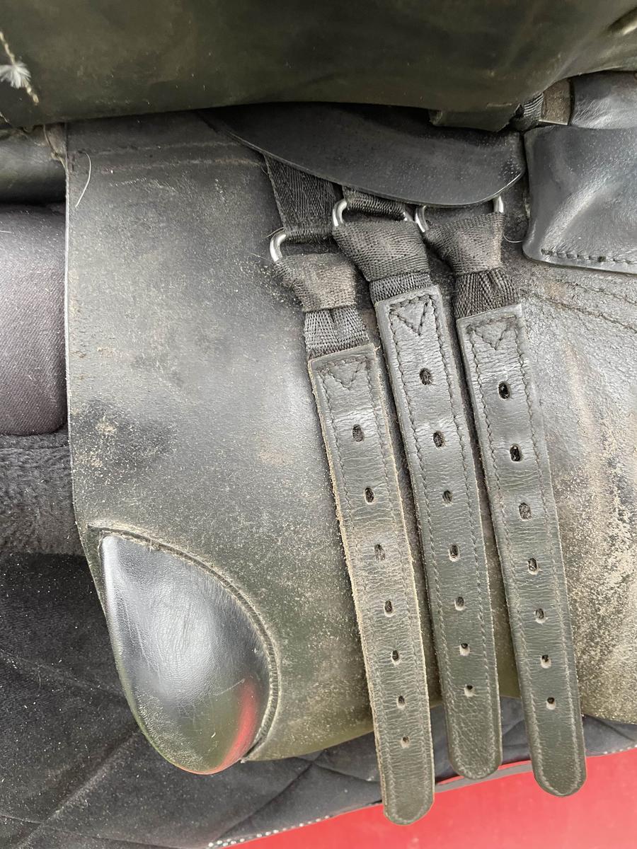En très bon état, juste le troussequin (voir photo) un peu abîmé et un contre sanglon (interchangeables) mais ne gêne pas l’utilisation.