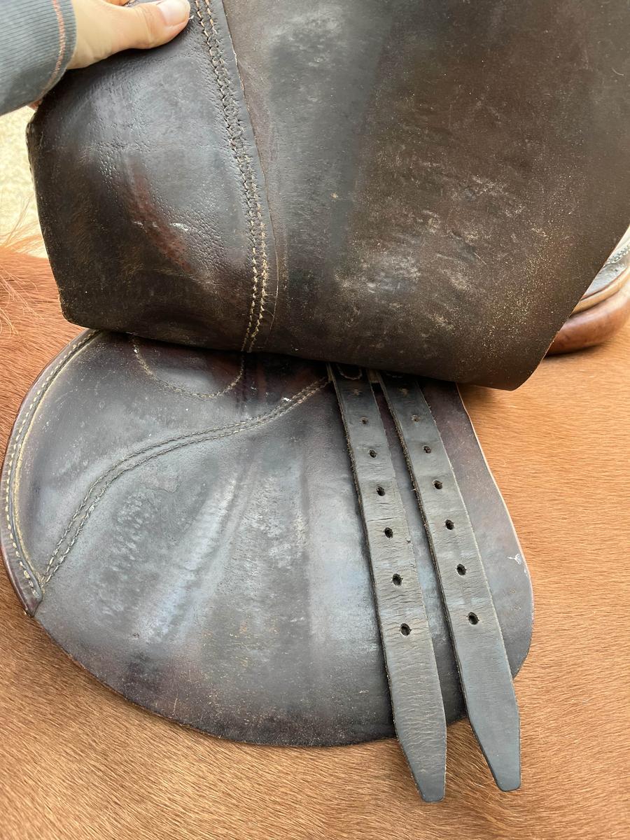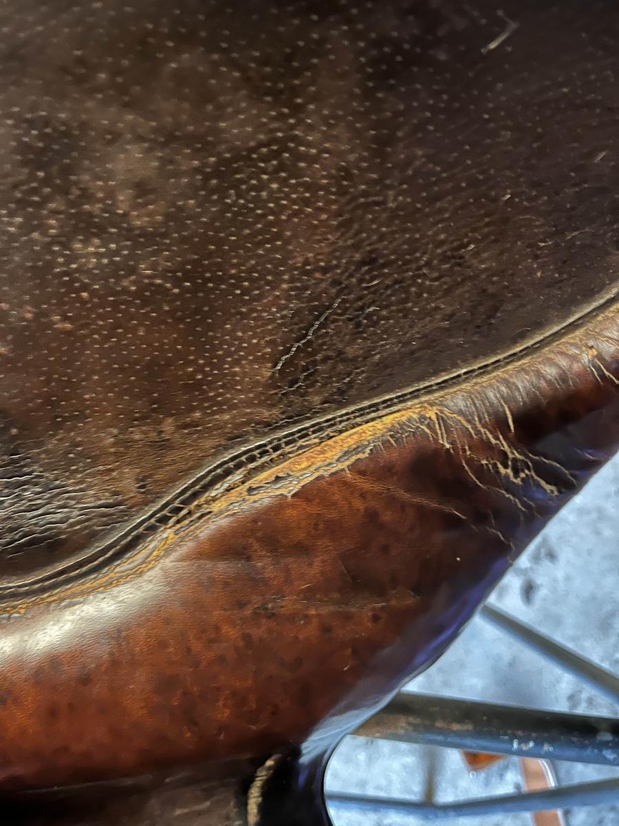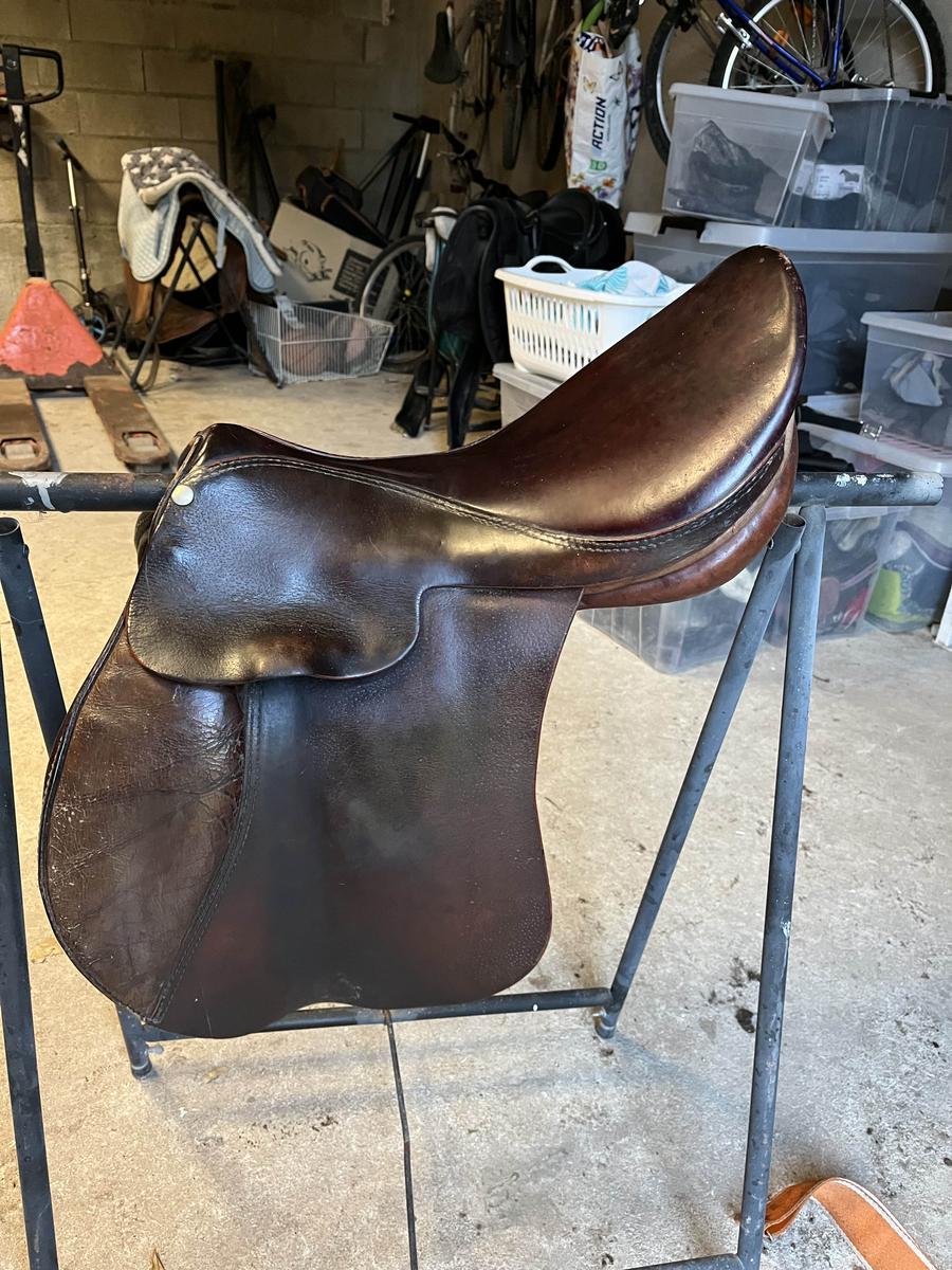 selle forestier , vieux modèle mais peut encore servir en club , débourrage etc taille 16,5 , le cuir a craqué à certain endroit suite au manque d’entretien de la personne d’avant