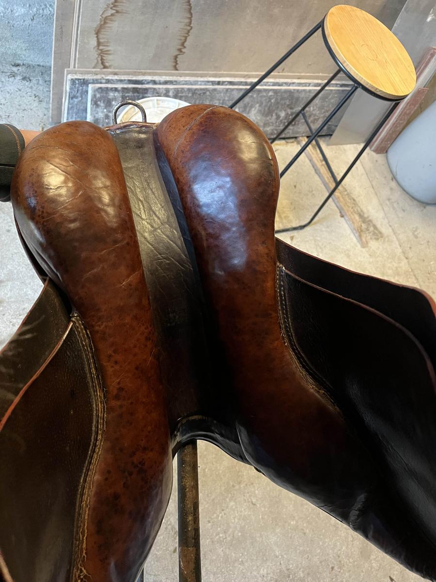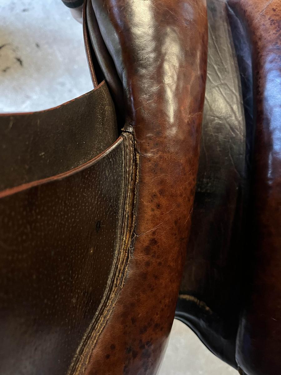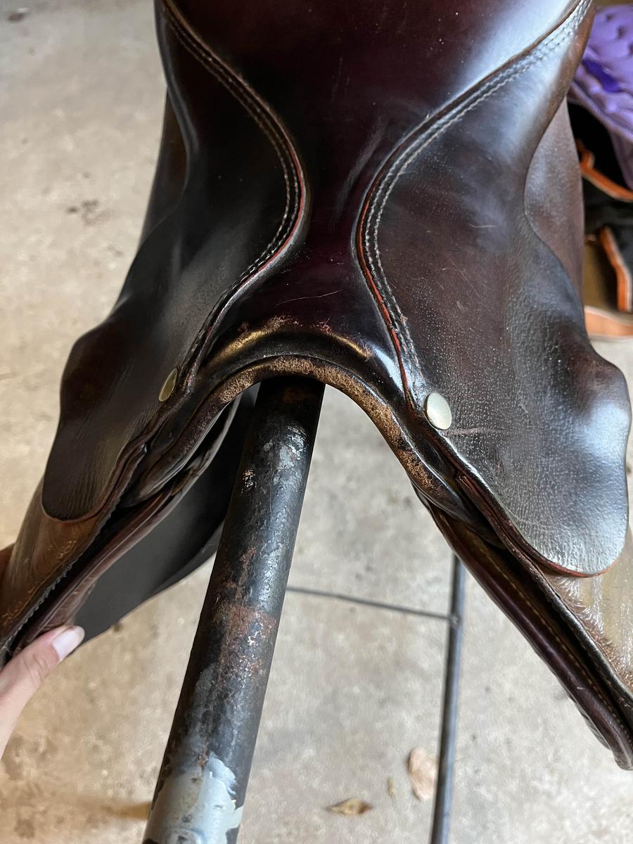 selle forestier , vieux modèle mais peut encore servir en club , débourrage etc taille 16,5 , le cuir a craqué à certain endroit suite au manque d’entretien de la personne d’avant