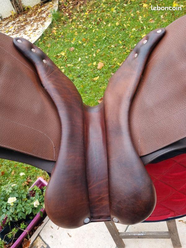 Bon état global. Quelques traces de frottement au niveau des étrivières. Selle entretenue et graissée régulièrement.