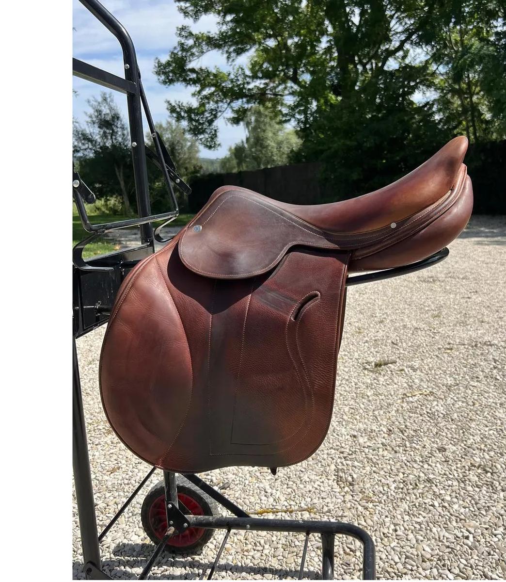Je vends ma selle Hermès Cavale taille 17, coloris irish/taupe achetée neuve en 2019 (prix neuf actuel 7300€ + délai de 11 mois)
