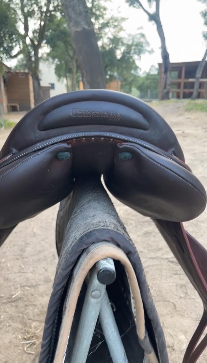 Je la vend car elle ne convient plus à ma jument. Sera vendu avec la housse et la sangle courte de taille 60cm.