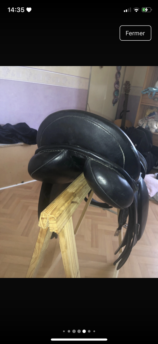 la selle a un léger petit à accro qui se voit seulement si on le sait elle a peu servi car elle ne va pas sur mon cheval la sangle à un peu plus servi elle sera nettoyée avant vente