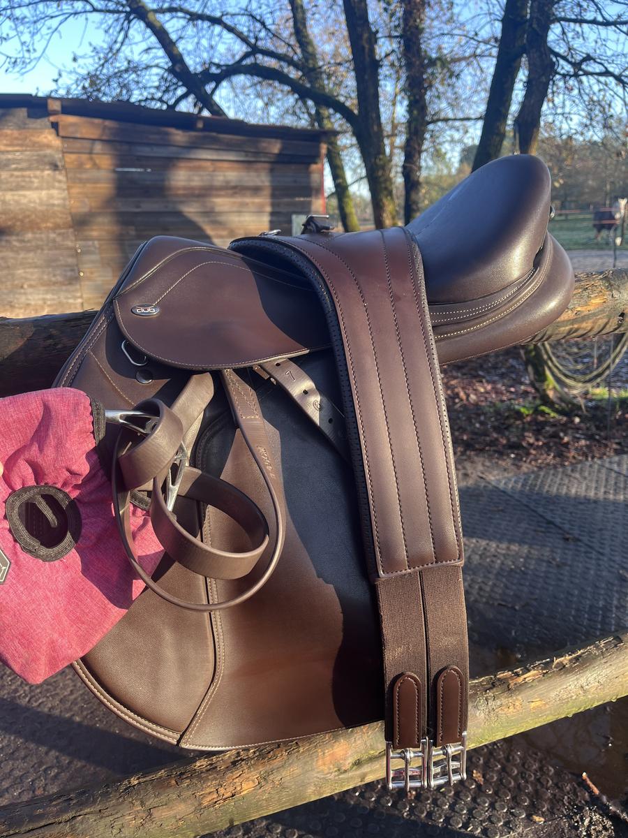 À vendre avec une sangle bavette 125 d’une valeur de 95€ et des étrivières d’une valeur de 45€. Et son protège selle.