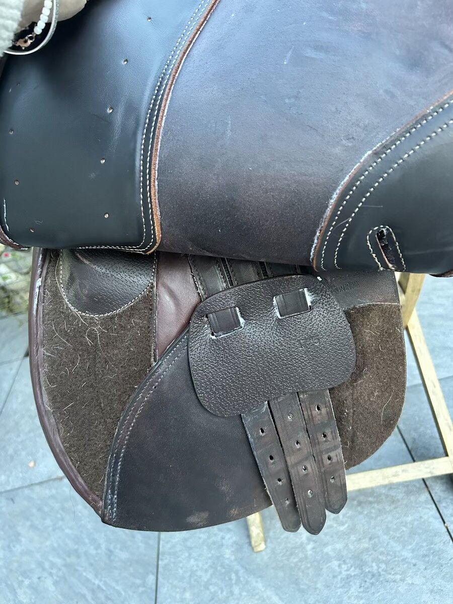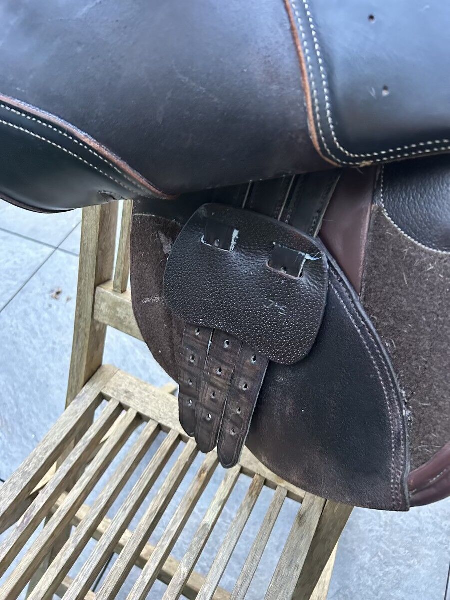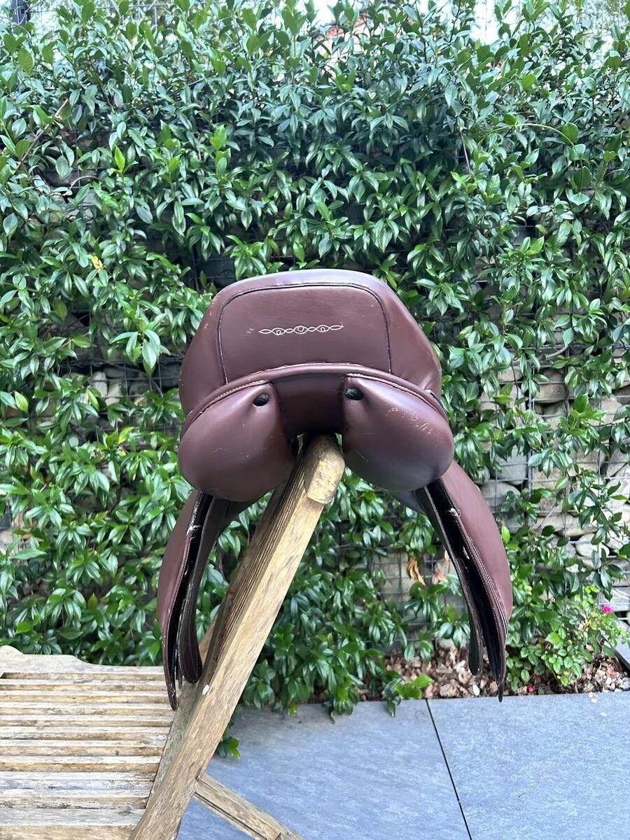 Selle Fouganza modèle Romeo de 2022 Très bon état Vendue avec les 3 arcades interchangeables, les taquets qui se scratchent et la housse Très bon état Elle sera graissée avant envoie facture à l’appuie Actuellement elle a l’arcade L