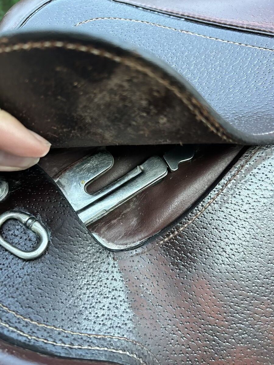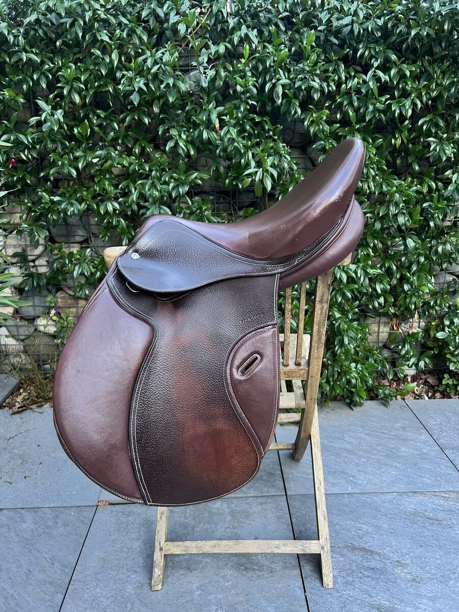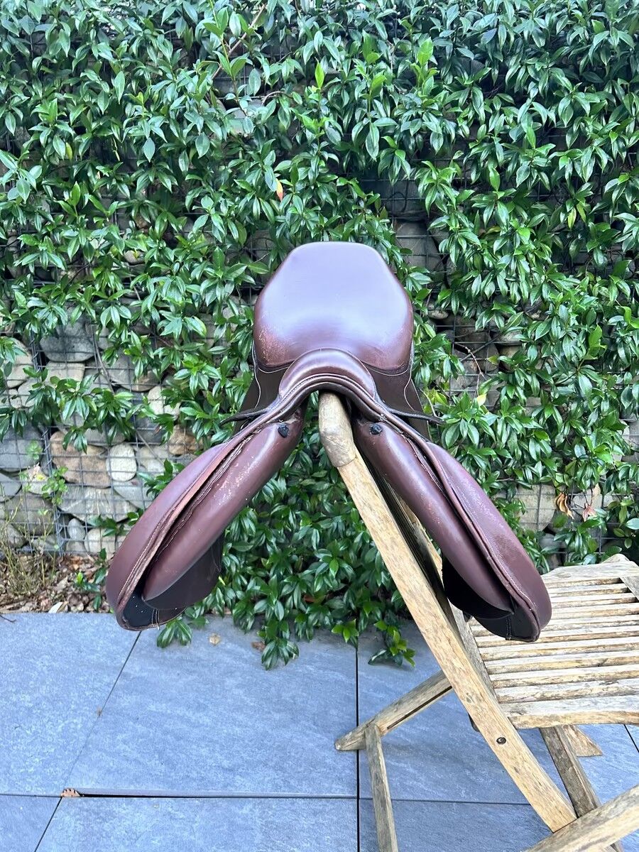 Selle Fouganza modèle Romeo de 2022 Très bon état Vendue avec les 3 arcades interchangeables, les taquets qui se scratchent et la housse Très bon état Elle sera graissée avant envoie facture à l’appuie Actuellement elle a l’arcade L