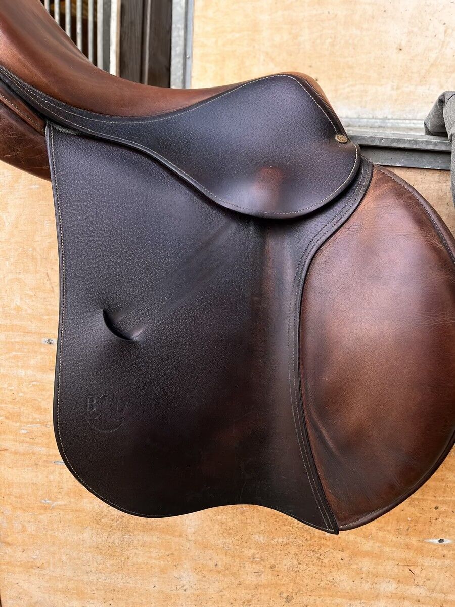 Je vends cette selle mixte / obstacle Bruno Delgrange Partition, année 2007 (marquages : 01 1707 P 17.5 / 5A). Taille de siège : 17.5pouces. Quartiers longs et ne venant pas sur l avant pour ne pas gêner les épaules du cheval. Cuir marron souple, en bon état (pas de révision récente effectuée), nettoyee après chaque utilisation Flaps 5A (longs avant normaux), idéale pour obstacle ou équitation polyvalente. Bonne conservation générale, toujours entretenue et stockée dans un endroit sec à et chauffé. Pas utilisée pendant plus de 10 ans suite à la perte de mon cheval, mais stockée au chaud, au sec et huilée durant cette période. N hésitez pas pour plus d information