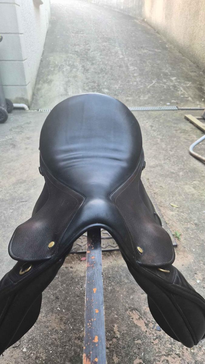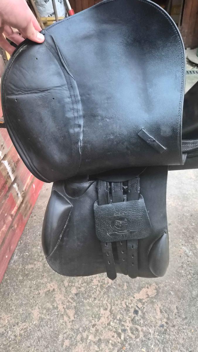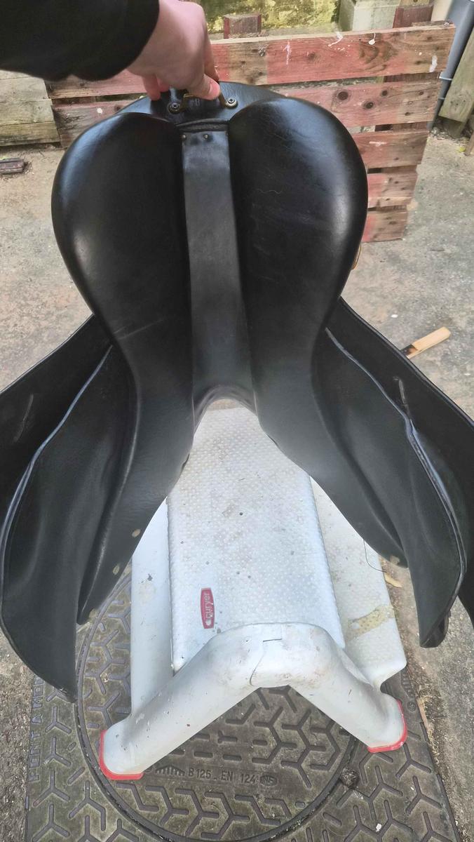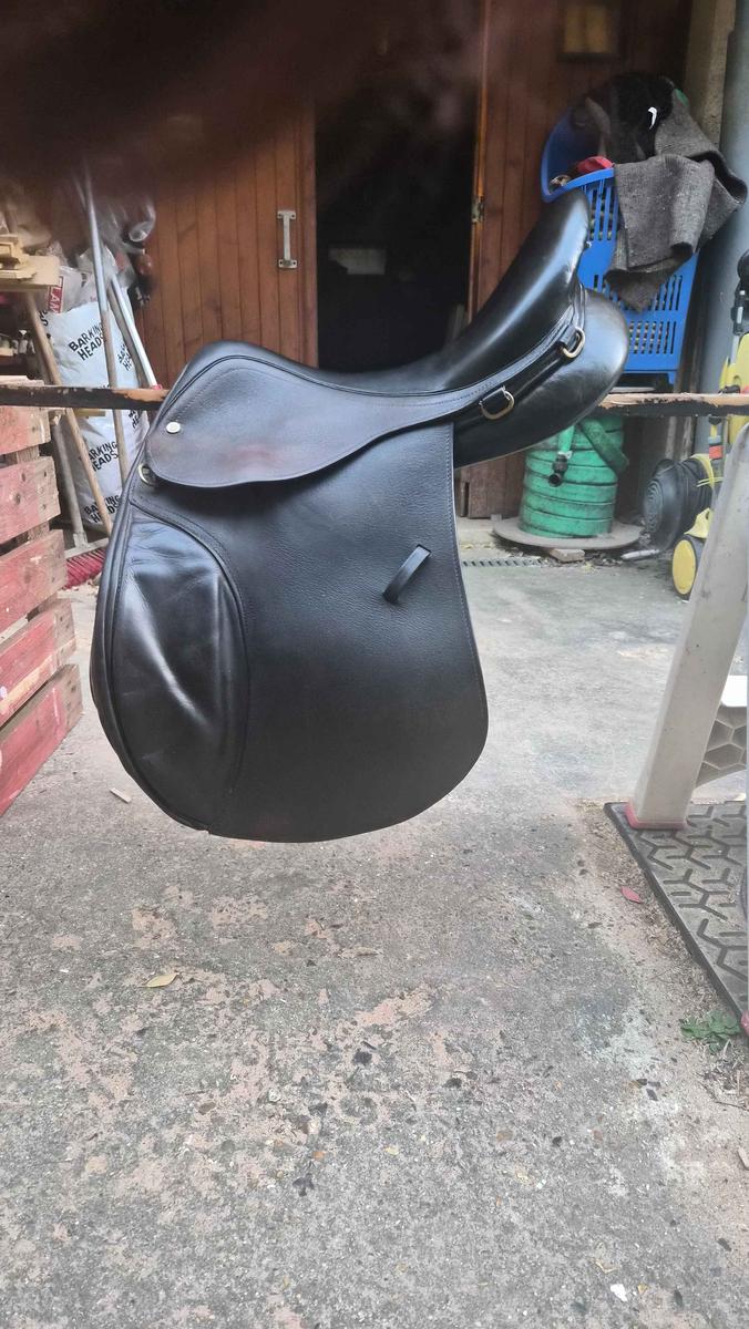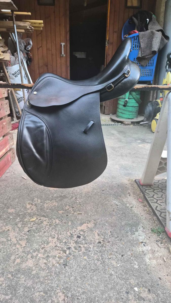 Selle d'équitation taille 17 pouces de la marque Eric Thomas en bon état un essai est possible et le prix est négociable une super occasion pour un jeune cavalier