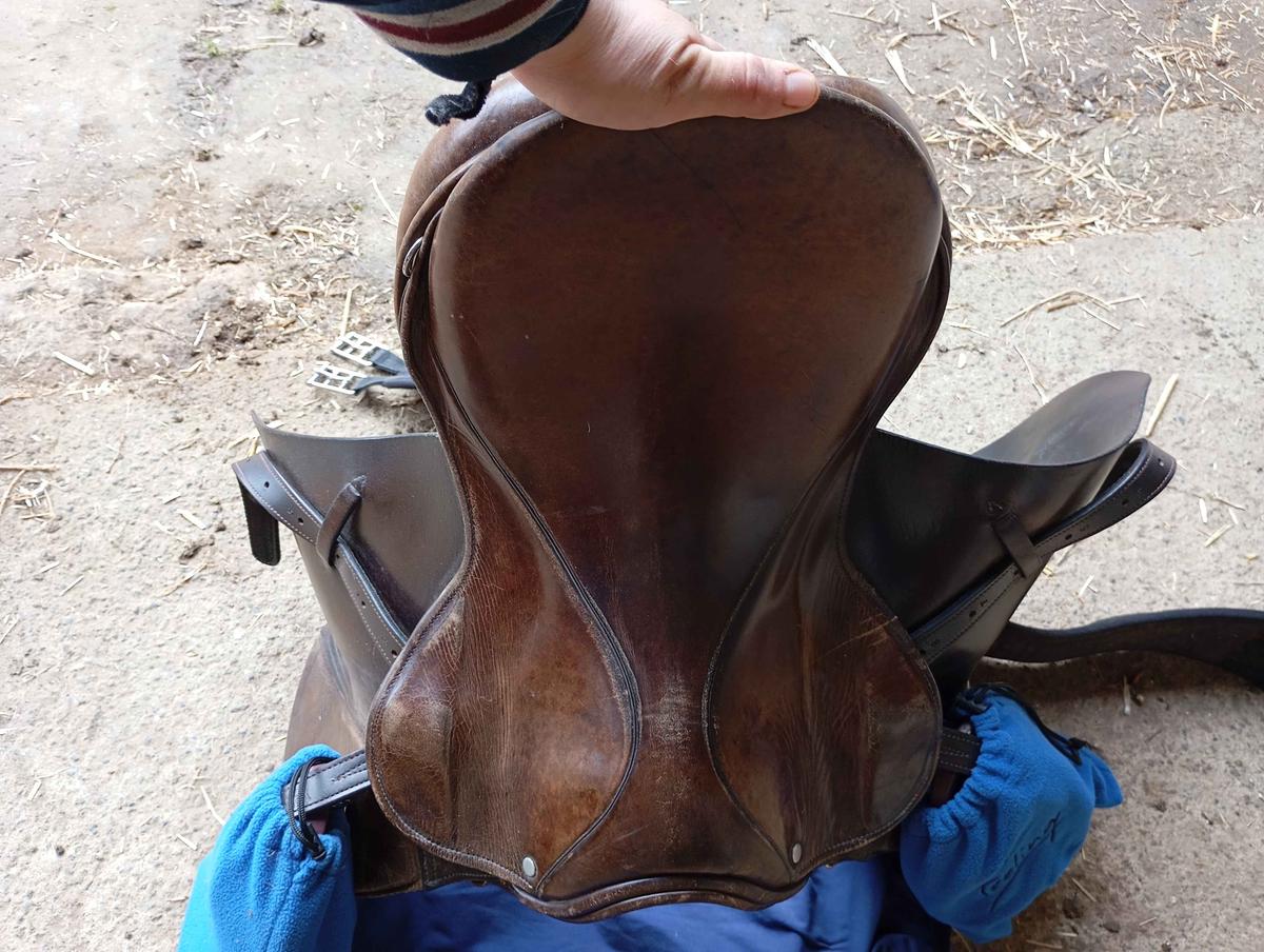 selle mixte de la marque ideal, couleur marron, en bon état général toujours bien entretenu vendu avec la sangle, taille 17 "5.