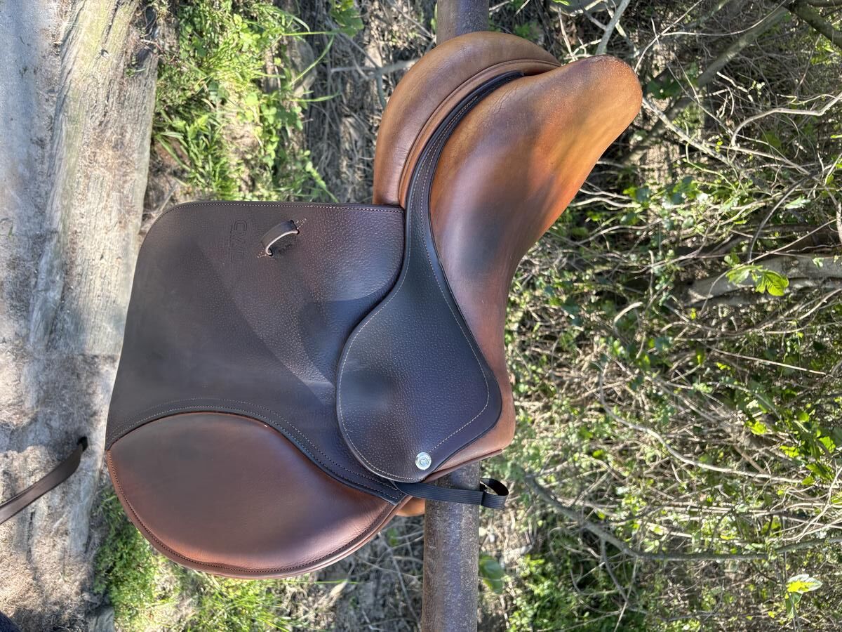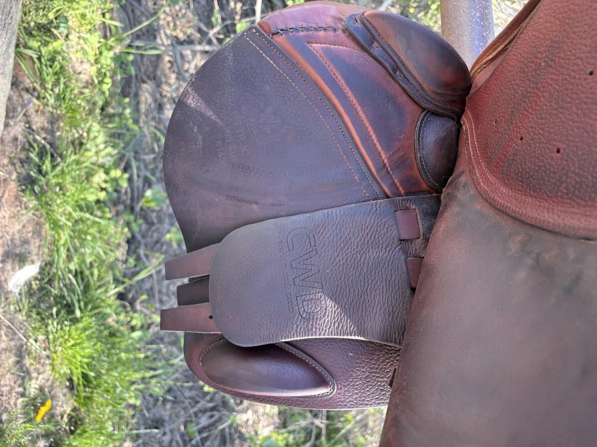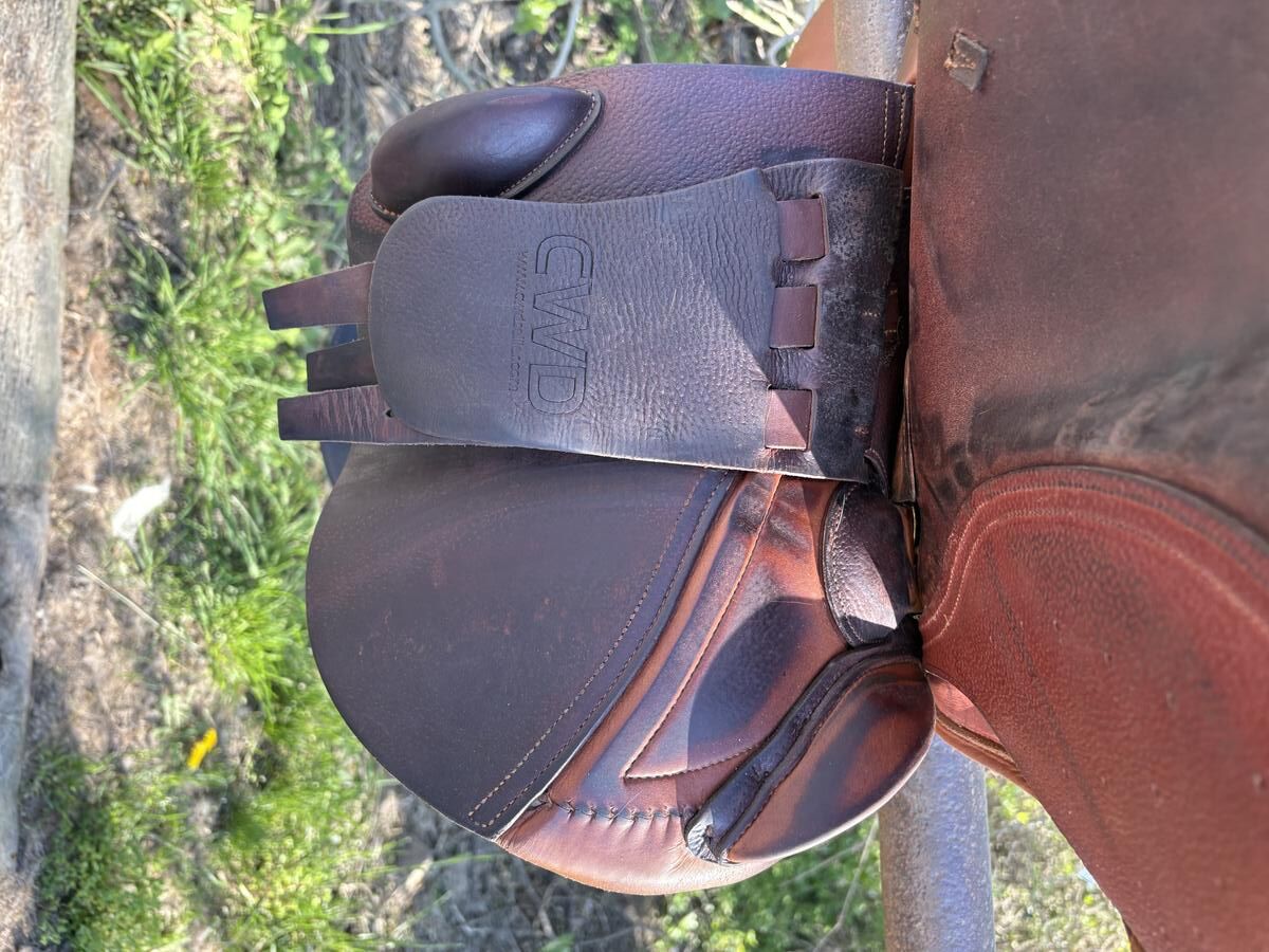 selle cwd taille 17,5 pouces de 2018 refaite à neuf utilise moins d 1 an, cuir marron vendue avec sa housse d’origine