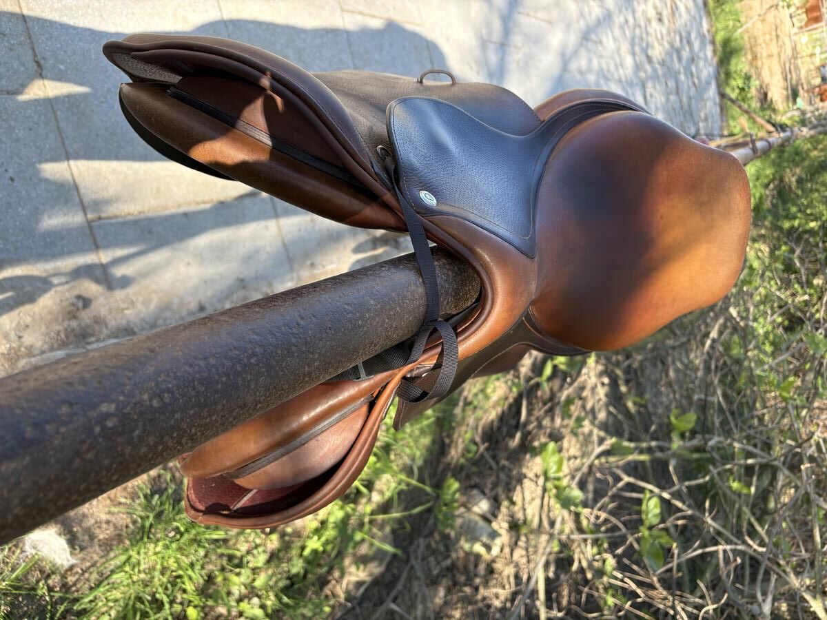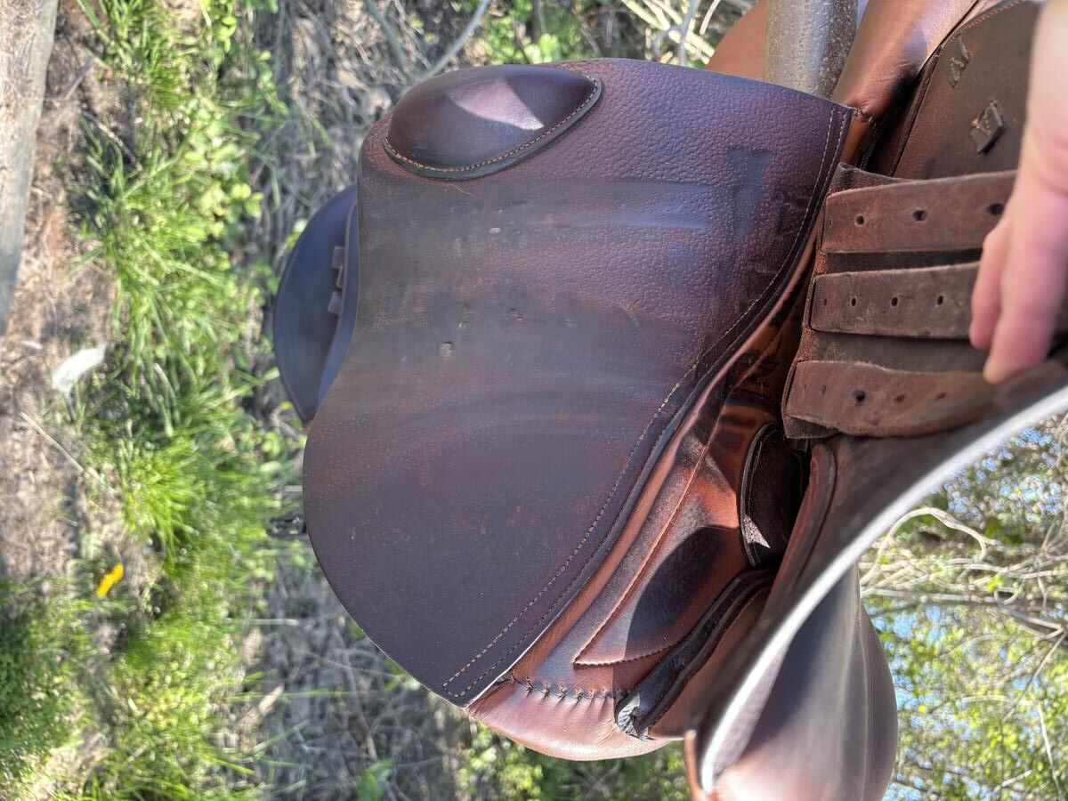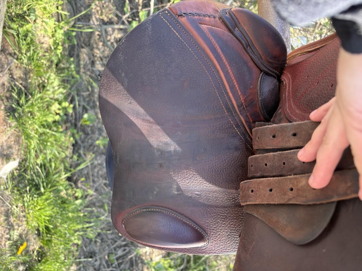 selle cwd taille 17,5 pouces de 2018 refaite à neuf utilise moins d 1 an, cuir marron vendue avec sa housse d’origine