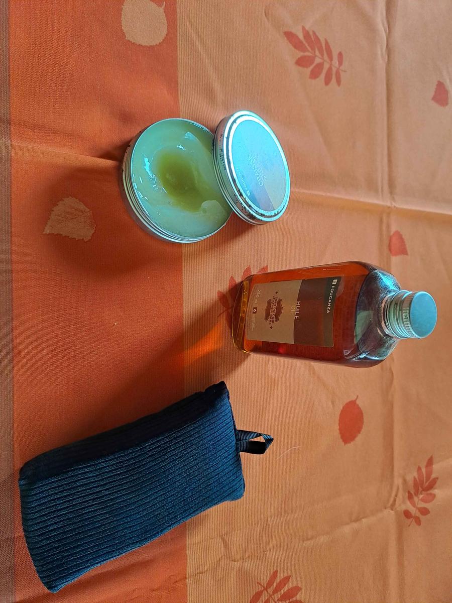 utilisé 1 fois 1 éponge 1 huile 1 graisse manque le savon