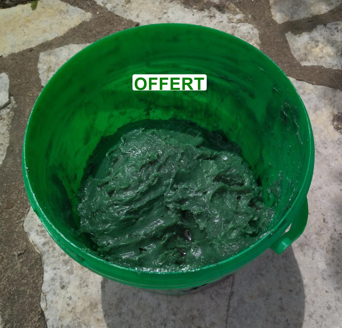 2,5 kg supplémentaires offert car le récipient est fissuré et réparé avec du ruban adhésif (je vais l’emballer dans un sac étanche)