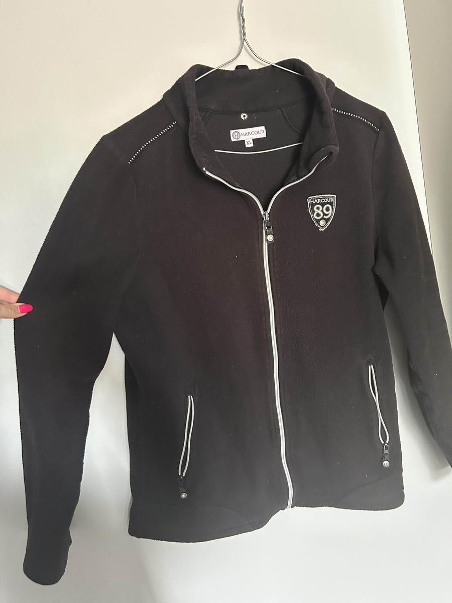Bonjour Je vends une veste polaire sans capuche femme HARCOUR Très bon état noir XL Possibilité de faire des lots avec d’autres articles