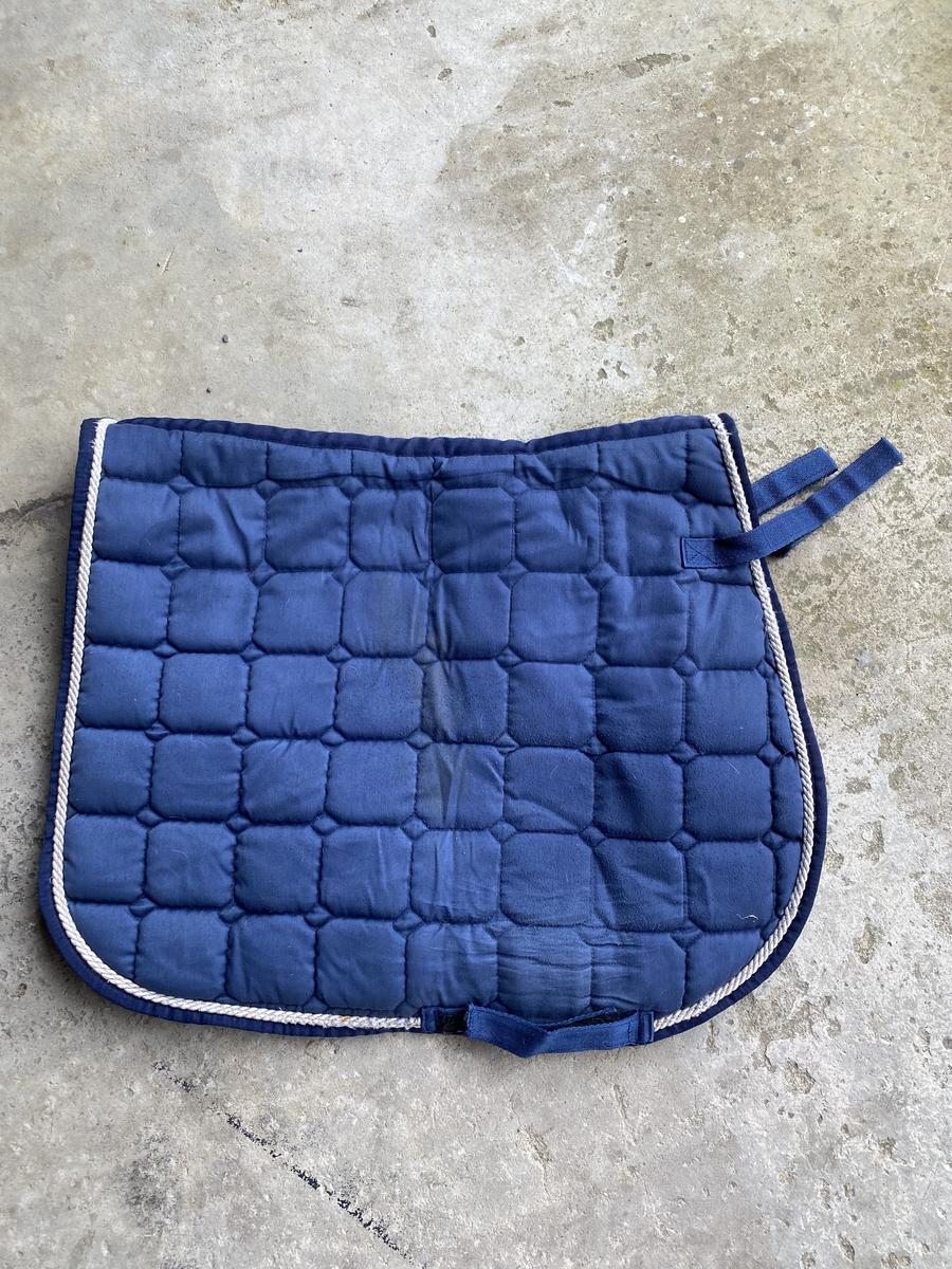 Tapis bleu avec cordelette blanche HKM.