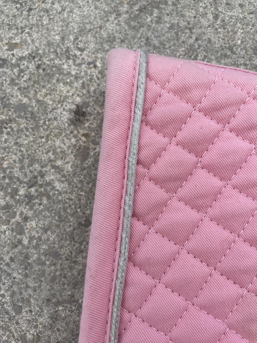 Tapis rose, liserai argenté.