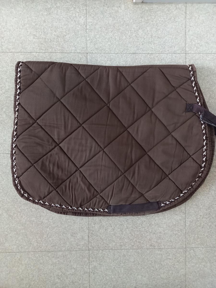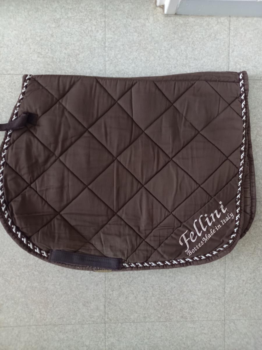 Tapis Fellini Marron. Taille cheval. Bon état. Tout en coton même à l'intérieur. Contours marron et blanc