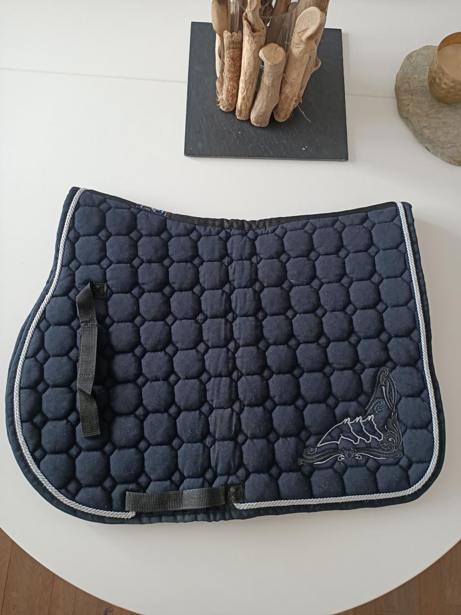 Tapis de selle Equiline, bleu marine et liseret argenté.
