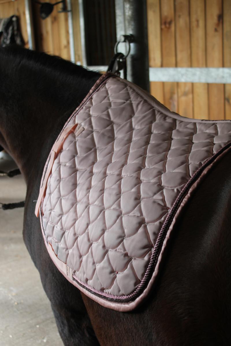 Tapis coupe saut , vieux rose avec des petites perles à gauche.