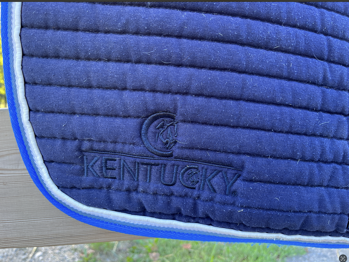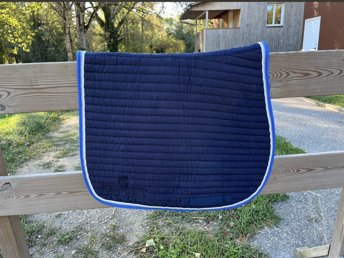 Tapis Kentucky bleu marine, liseret bleu clair et blanc