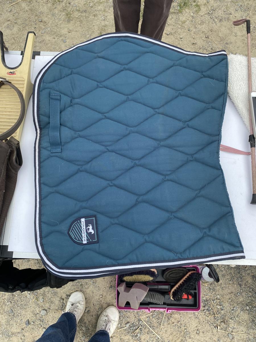 Tapis fouganza bleu canard, porté qu’une seule fois, en très bon état, pas de signe d’usure. Taille cheval