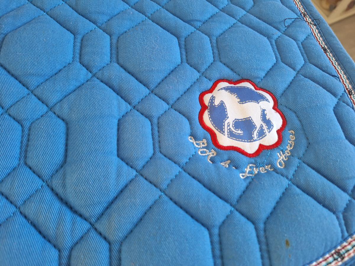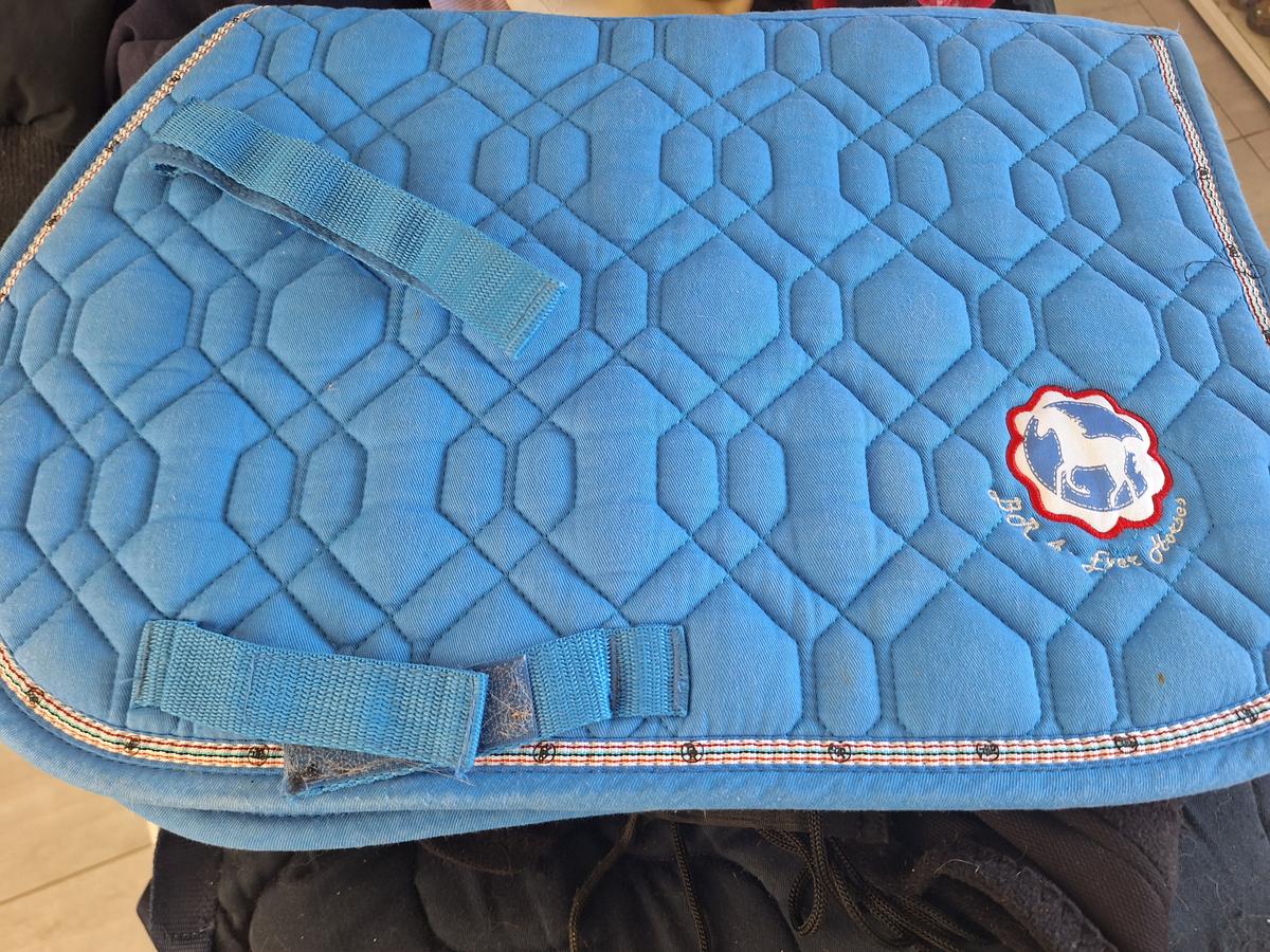 Tapis de selle de taille Shetland couleur bleu ciel. Très bon état, presque jamais utilisé.