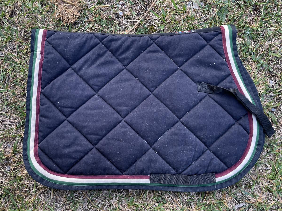 Tapis equiline PONEY , bleu marine, liseré vert/ rouge et blanc