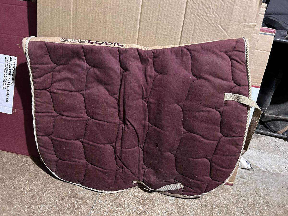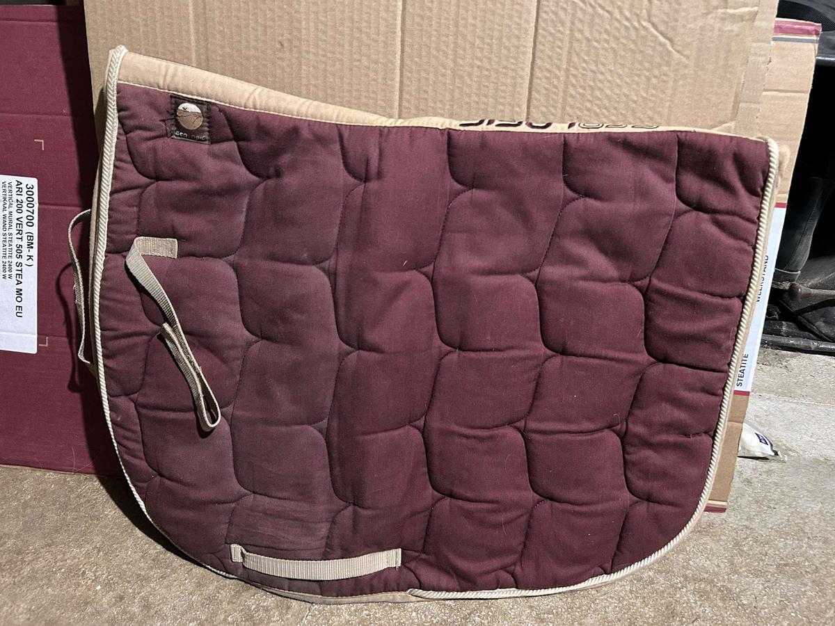 A vendre un tapis d’équitation bordeau de la marque Geologic avec les sangles scratch afin de le maintenir a la selle.
