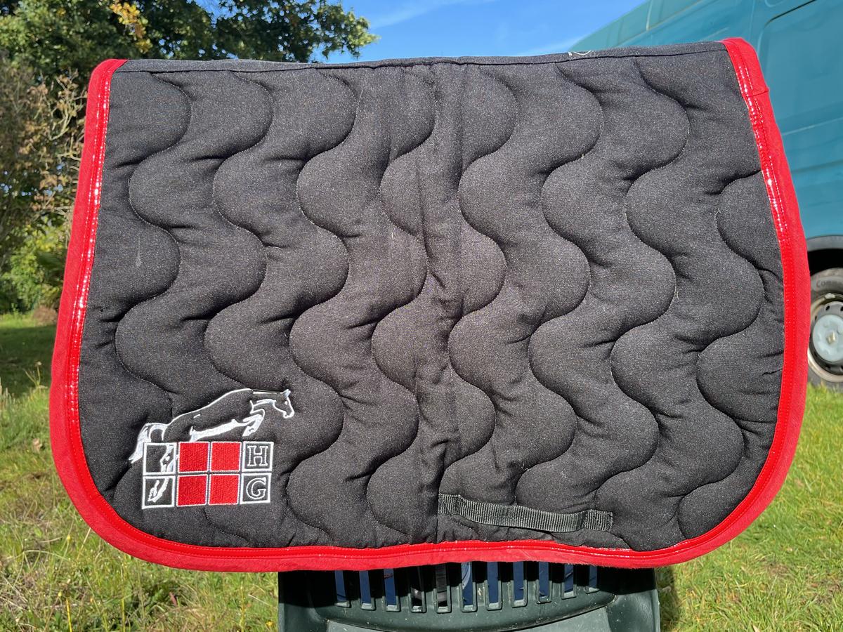 Je vends mon tapis Hervé Godignon taille cheval, de couleur noir et liserais rouge.