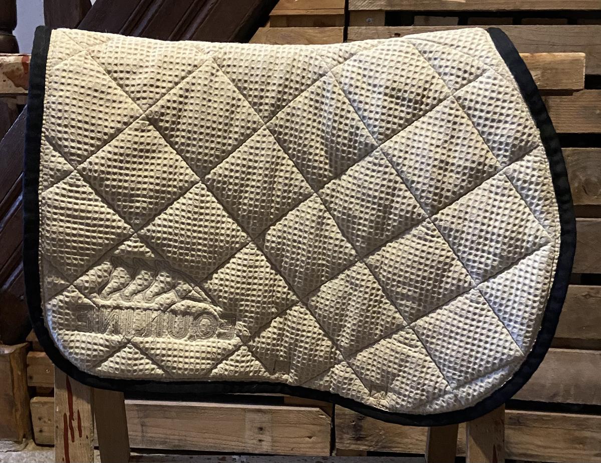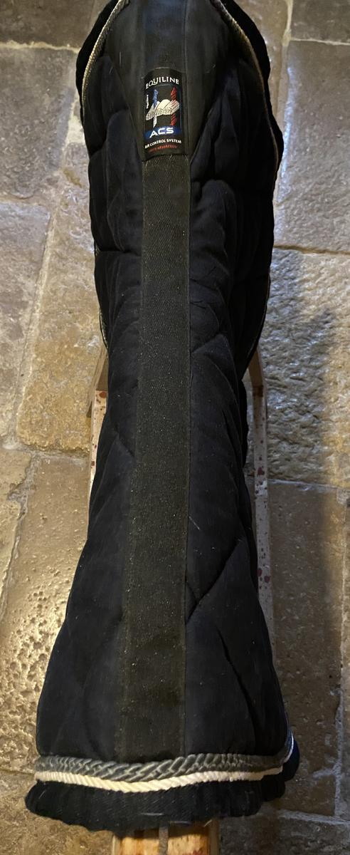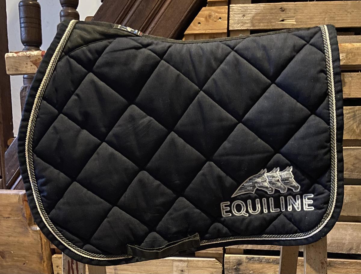 Tapis de la marque Equiline en coupe CSO de couleur bleue marine en bon état.