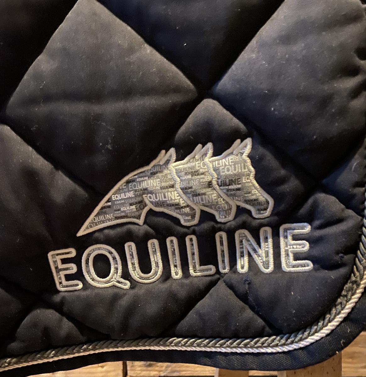 Tapis de la marque Equiline en coupe CSO de couleur bleue marine en bon état.