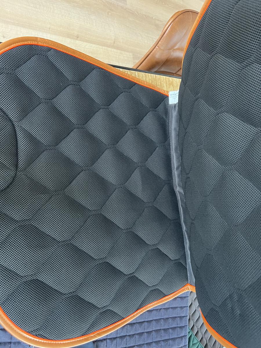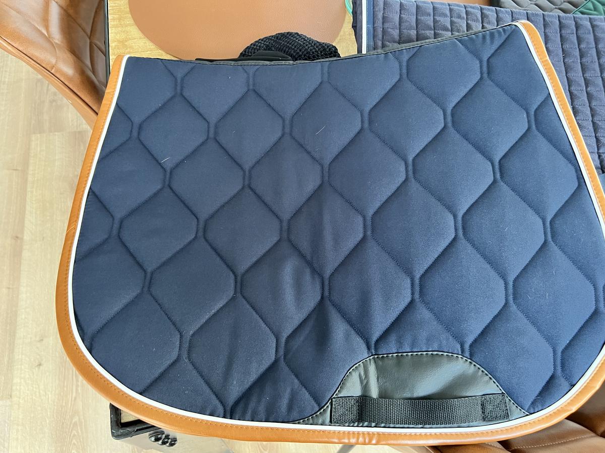 Vends tapis bleu marine taille cheval bord cuir Camel neuf