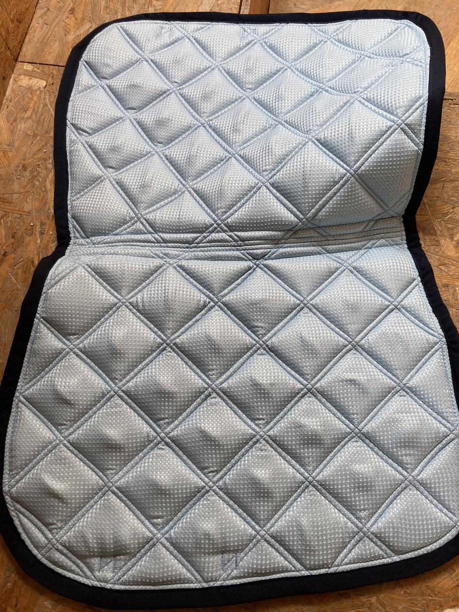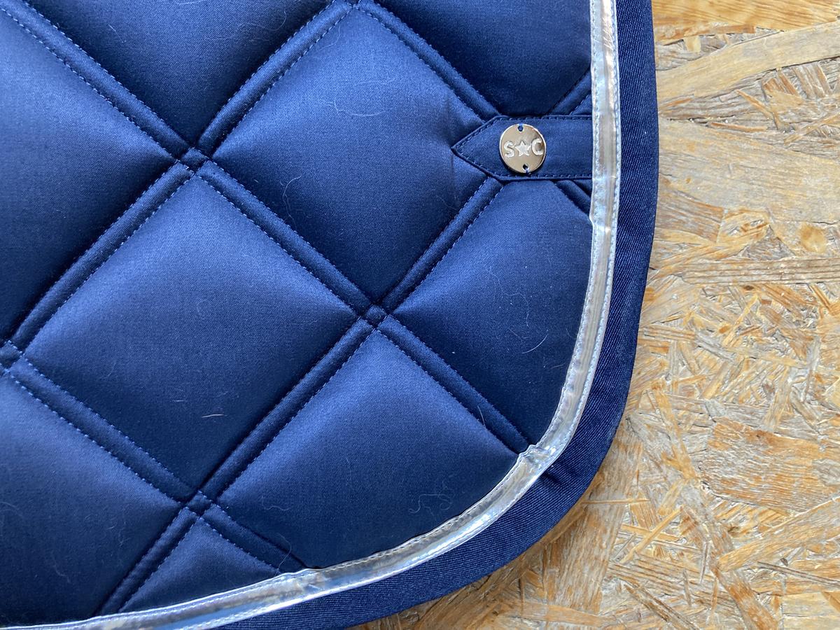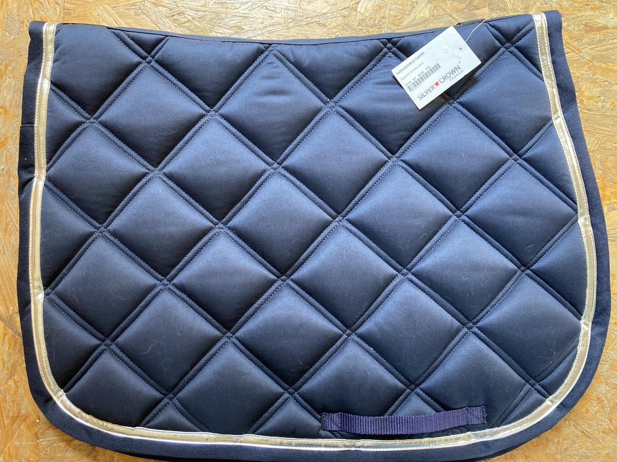 Tapis modèle double carré Silver Crown coloris bleu marine et liseré argenté.