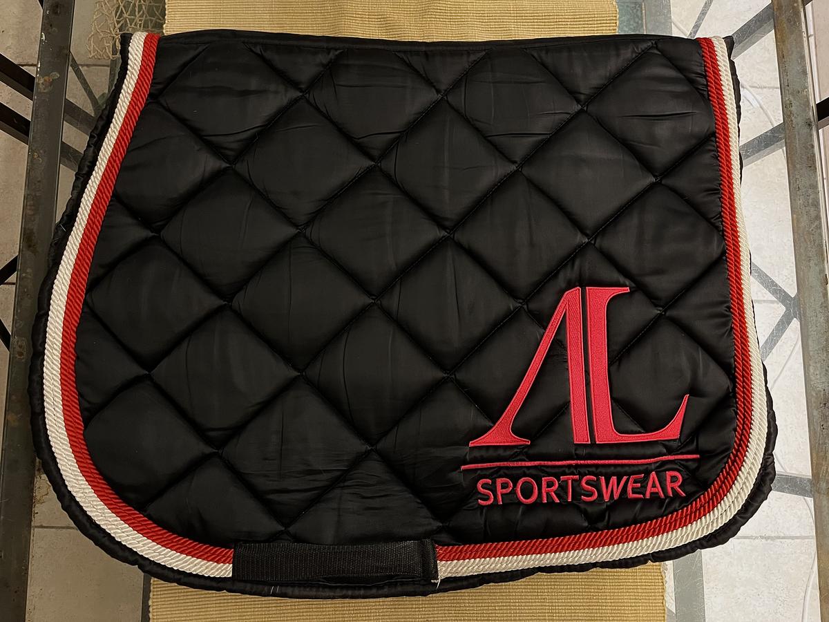 Tapis Alexandra Ledermann noir et rouge, bandes de polo rouges x4 vendue avec, possibilité de séparer les produits