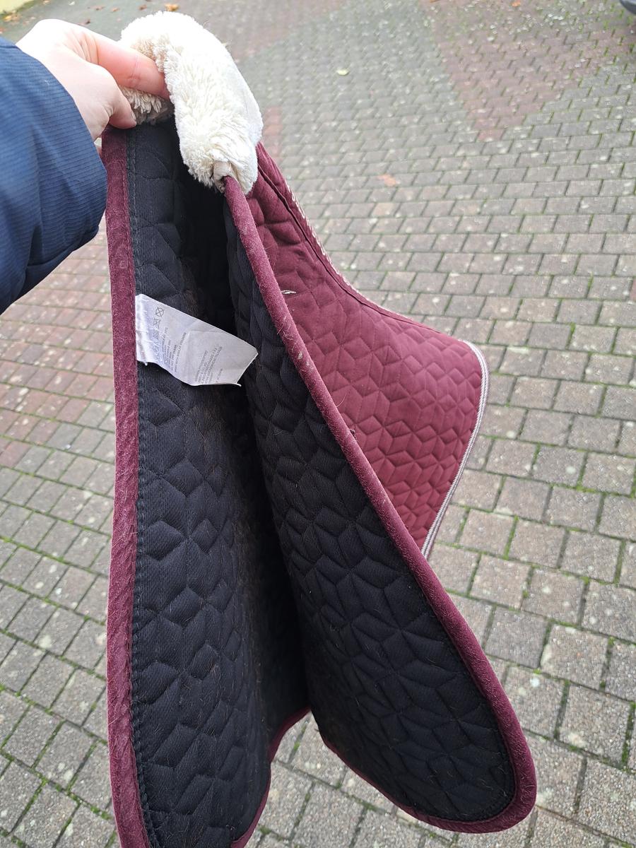 Tapis Showmaster bordeaux, moumoute beige sur le garot