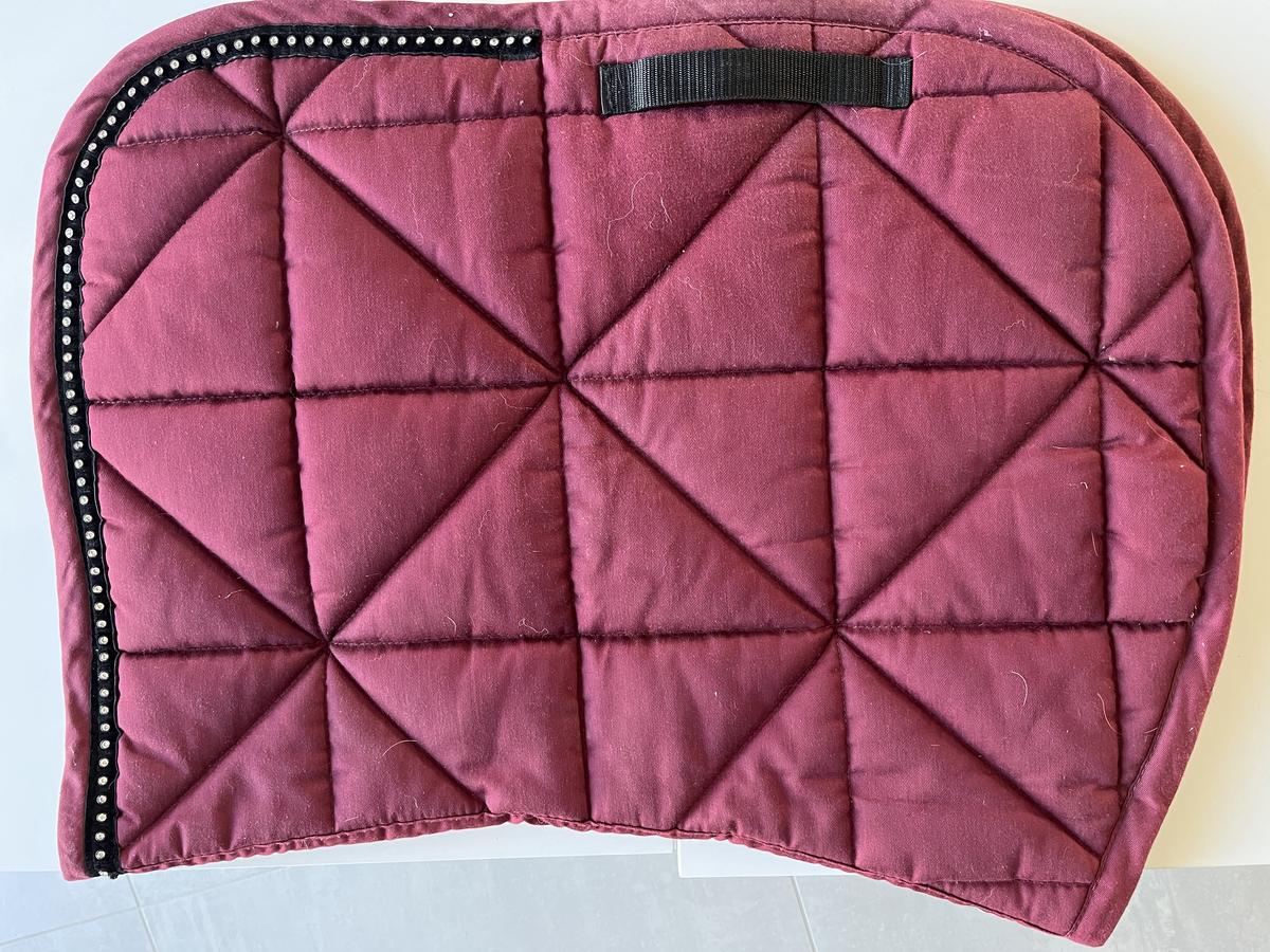 Tapis décathlon bordeaux avec des strass. Taille cheval aucun défaut. En bon état.